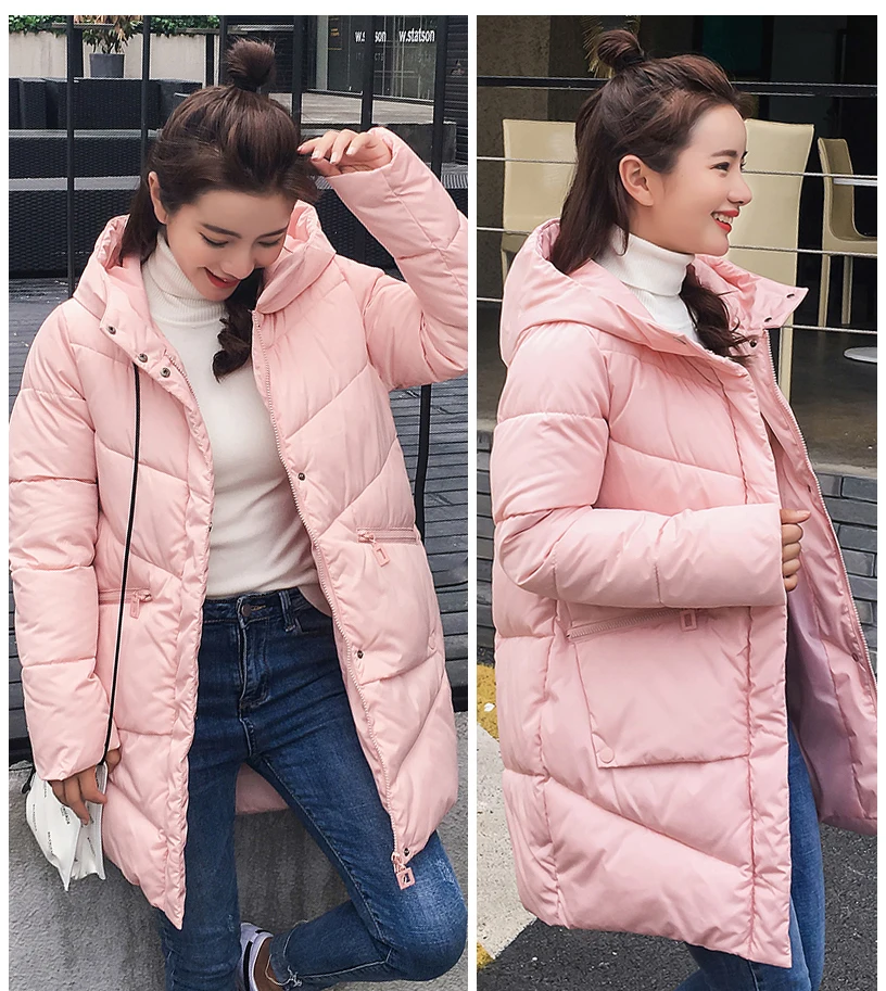 Женский зимний пуховик на молнии 2021, свободное женское длинное пу...