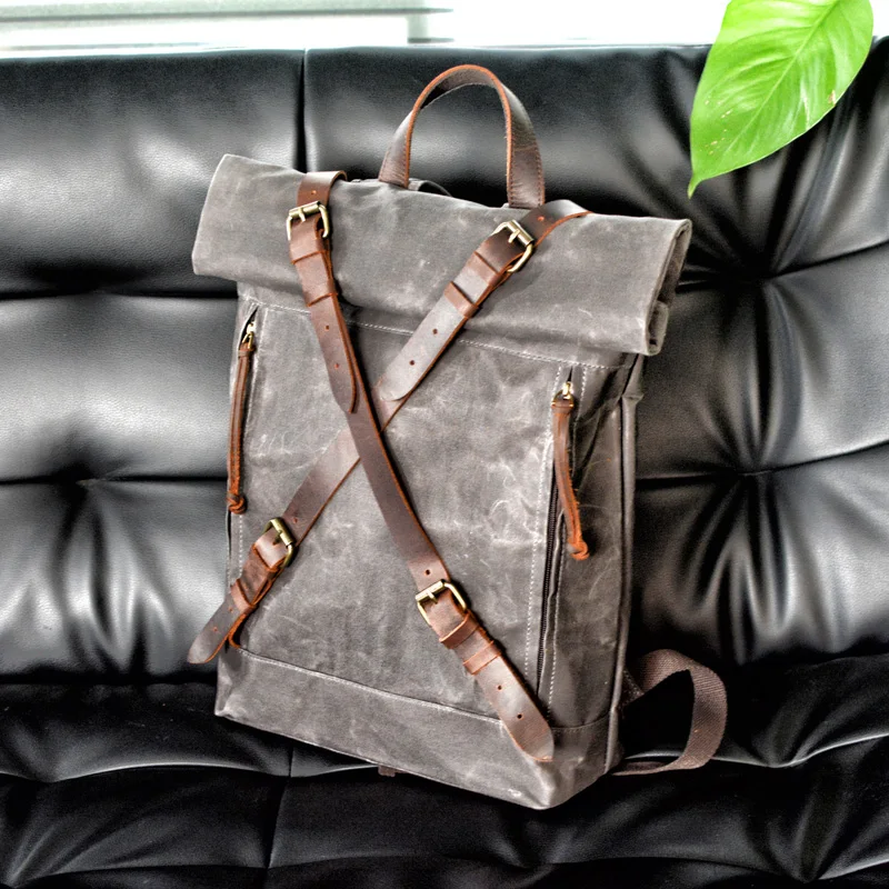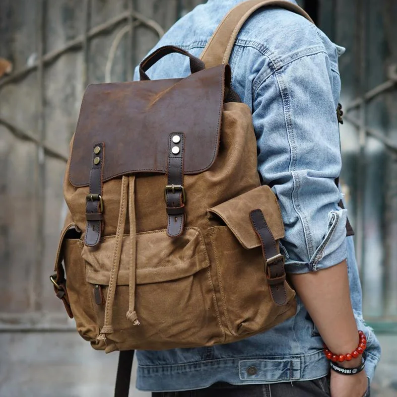 Мужской холщовый походный рюкзак водостойкий воск, уличная дорожная...