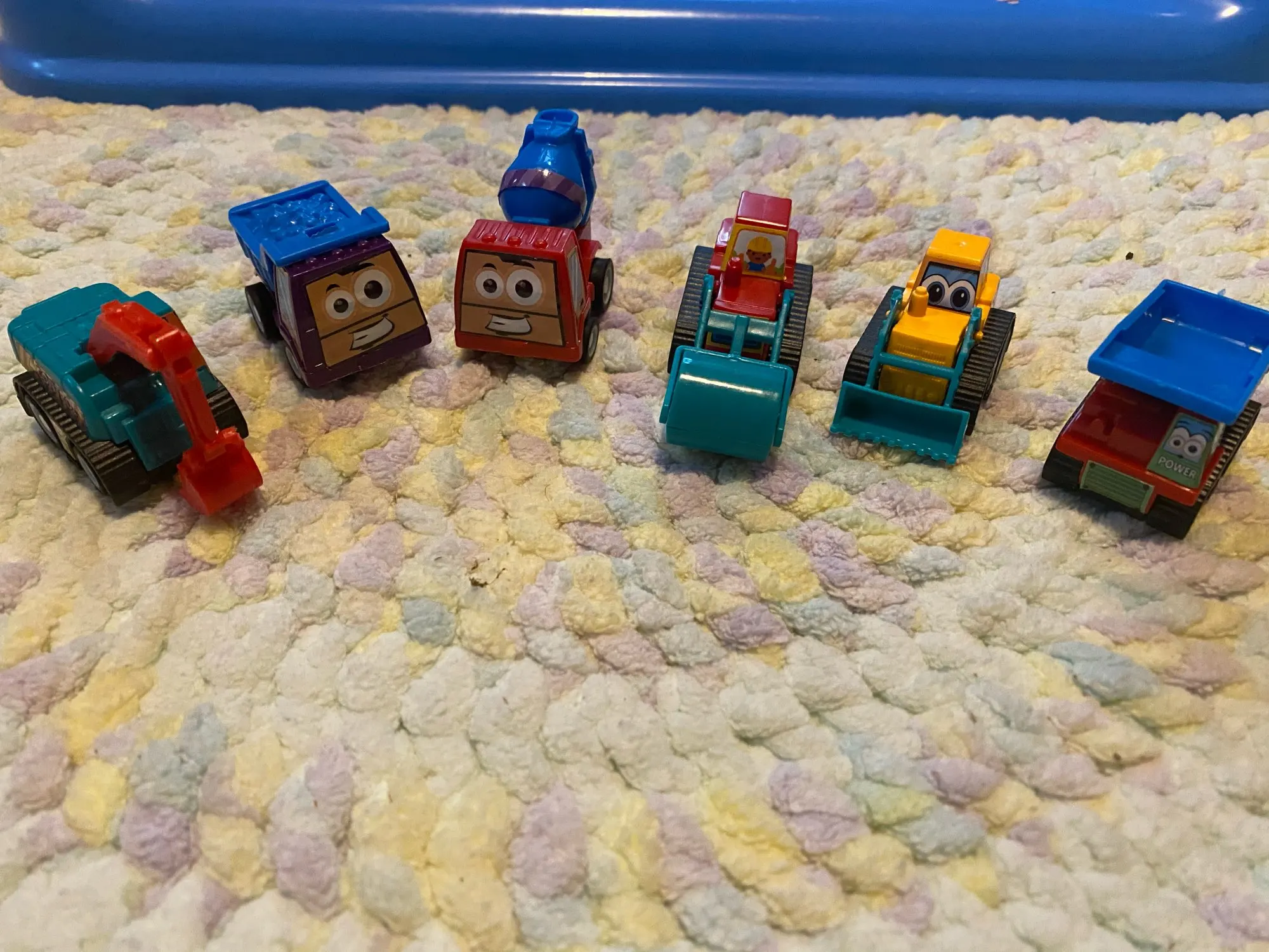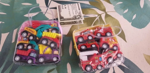 Действительно хороший набор автомобилей. Они тянутся к спине и двигаются вперед сами. Мой ребенок играл с ними в течение последних двух дней, иногда Бросив их, и до сих пор они обрабатывают его очень хорошо. Они довольно маленькие, но идеально подходят для маленьких рук. Доставка в Германию занимает всего 3 недели. Настоятельно рекомендуем!