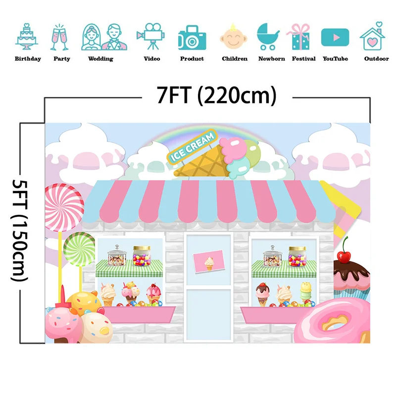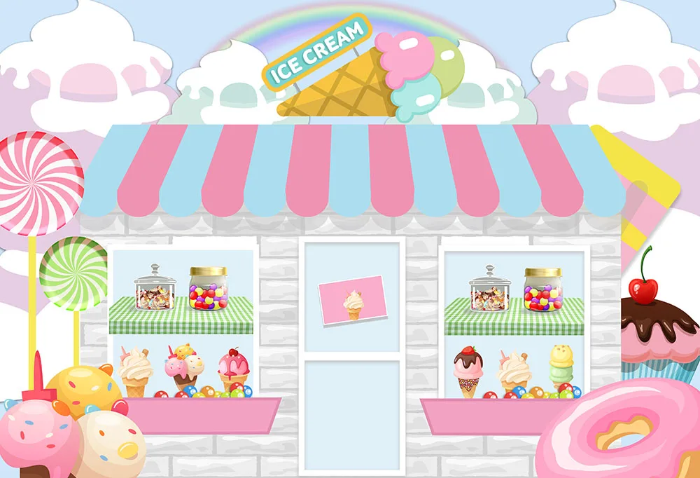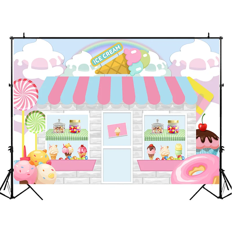 Фон для фотосъемки в магазине мороженого, Декорации для детского дня рождения и вечеринки, фоны для фотосъемки с конфетным десертом