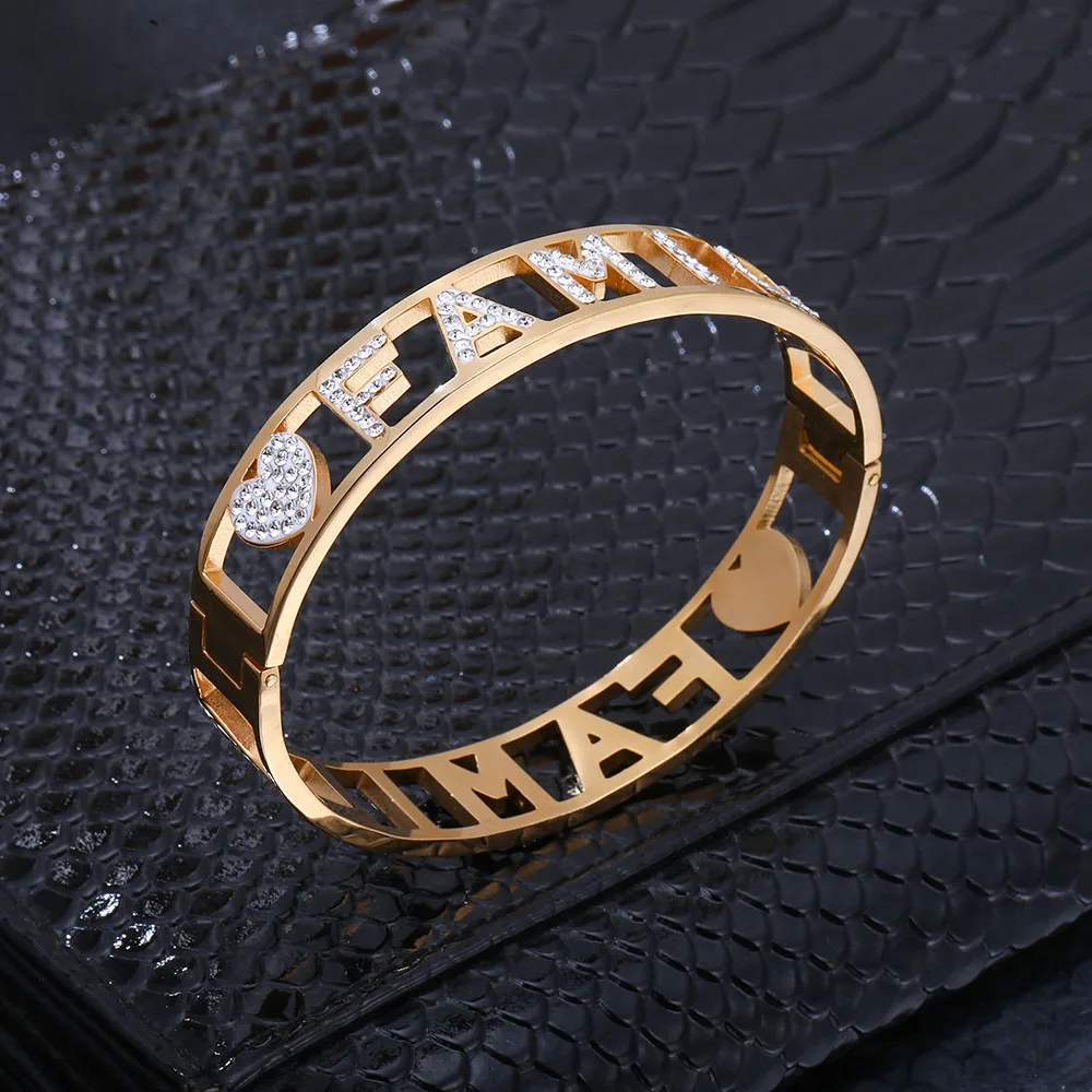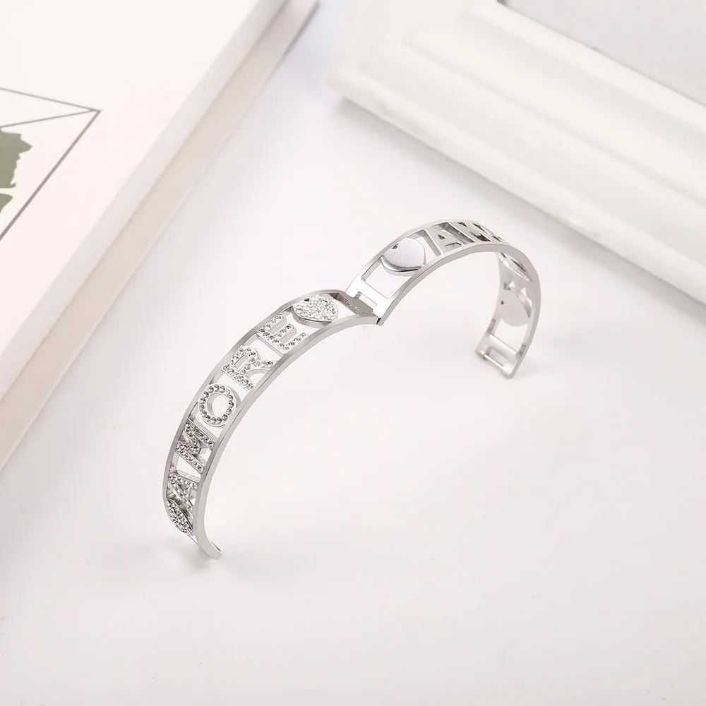 Сказочный Браслет-манжета с надписью Love, браслет с шармами Стразы, регулируемый дизайн, золотые браслеты, полые Простые Модные ювелирные изделия