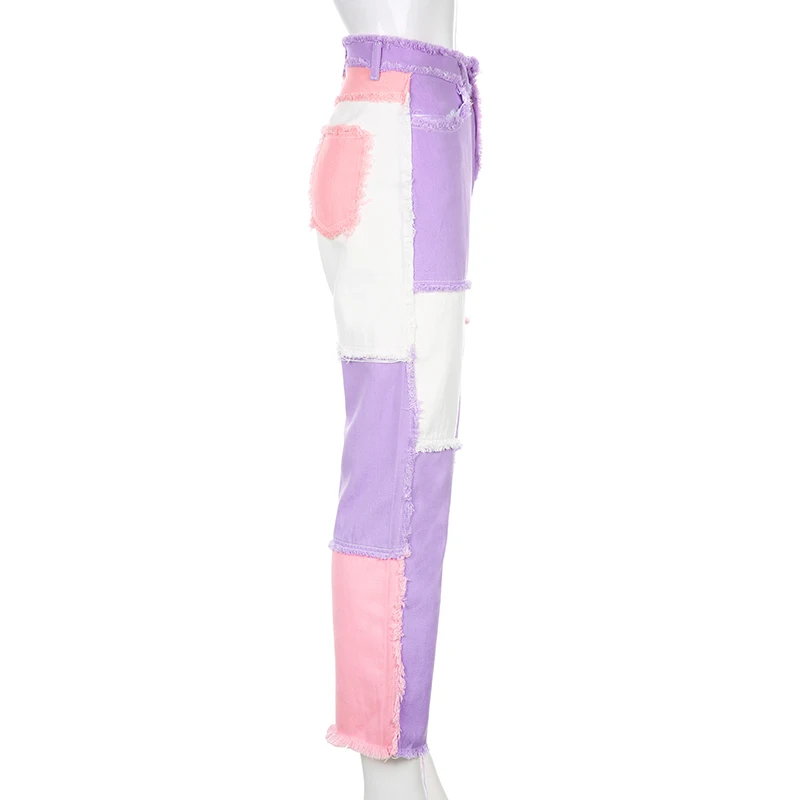 Новинка 2020, Осенние розовые джинсы в стиле хип-хоп в стиле пэчвор...