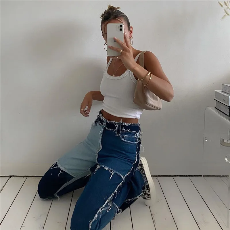Женские джинсы с высокой талией, прямые брюки в стиле хип-хоп с кон...