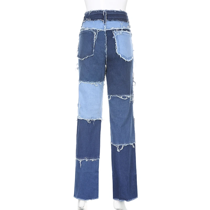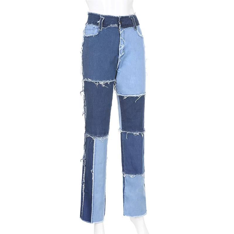 Джинсы женские коричневые в стиле пэчворк, брюки из денима с кисточ...
