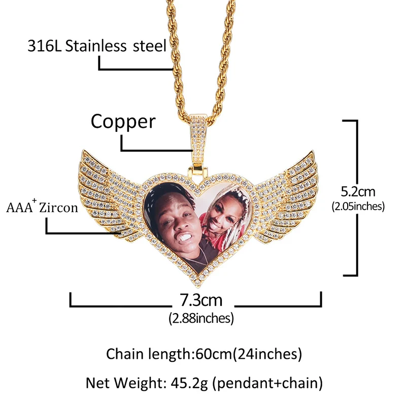 В стиле хип-хоп Bling льдом фоторамка на память медальоны с капюшоном, надписью Angel и принтом крылышки сердце Форма CZ подвески подойдет в качестве подарка как для мужчин, так и для женщин, для влюбленных, ювелирные изделия