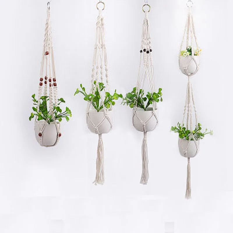 Подвесные корзины ручной работы макраме для растений, держатель для цветочных горшков, украшение для балкона, двора, сада, настенная вешалка для растений