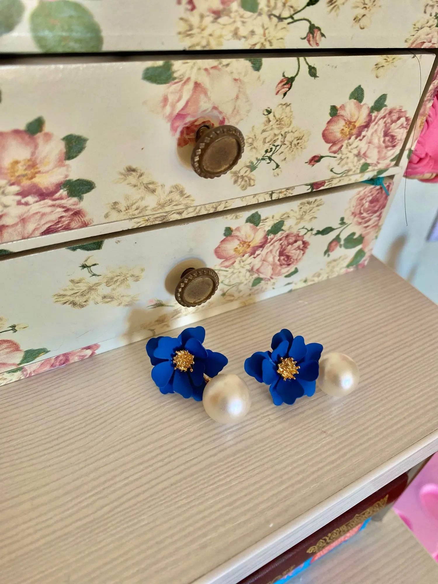 Серьги в стиле бохо женские, винтажные Корейские украшения с милыми цветами синего и зеленого цветов, модные розовые и красные серьги-подвески для девочек, 2020