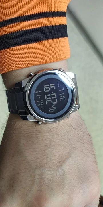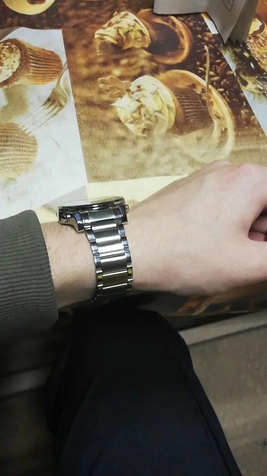 Очень красивые часы, они точно такие же, как в описании, они все из яркой стали и отлично смотрятся. Зеленый свет очень мощный и отлично выглядит при дневном свете. Коробка весит довольно немного, но цепочка Очень легкая, как только звенья идеально подходят к запястью, так что даже если коробка толстая, она не беспокоит запястье или платье. Вы также можете принимать душ с ним без проблем. Очень доволен этой покупкой, простой, практичный, красивый и универсальный. Спасибо.