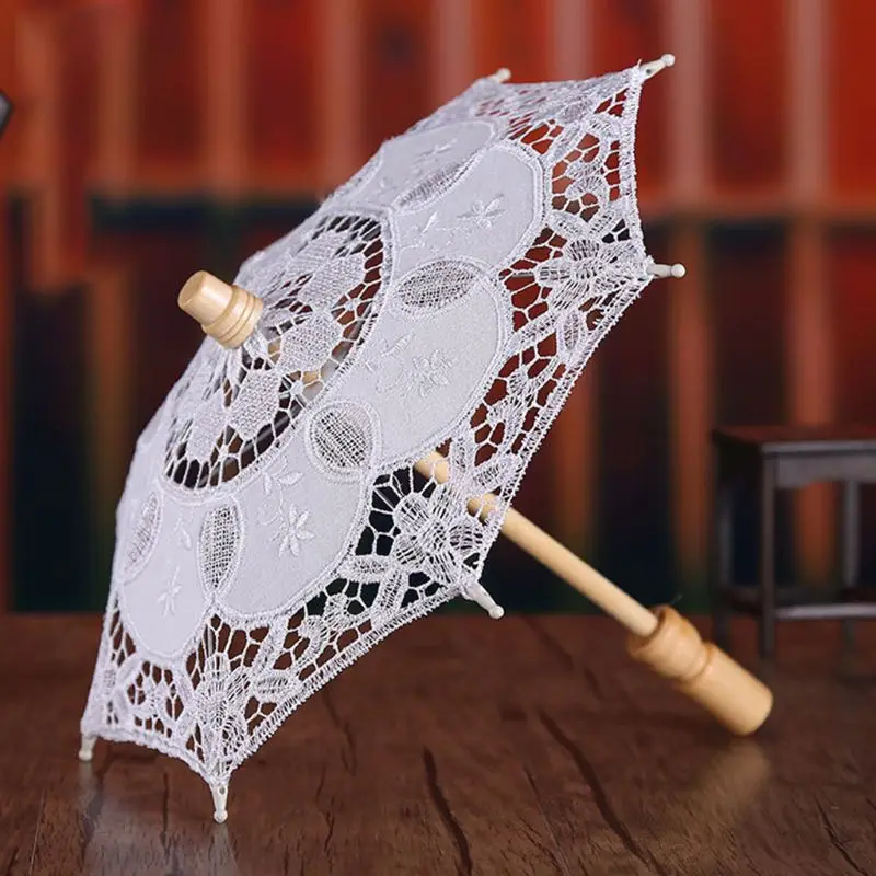 Кружевной зонт YO CHO длиной 43 см, хлопковый зонтик с вышивкой, бе...