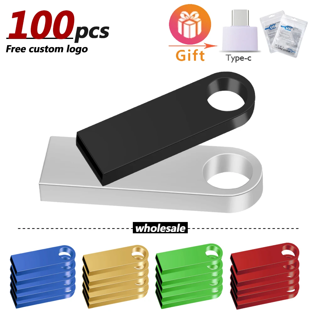 Флеш-накопитель Usb 100, 2,0 шт.лот, металлический, с персонализированным логотипом, 64 ГБ, 32 ГБ, 16 ГБ, 8 ГБ, 4 Гб