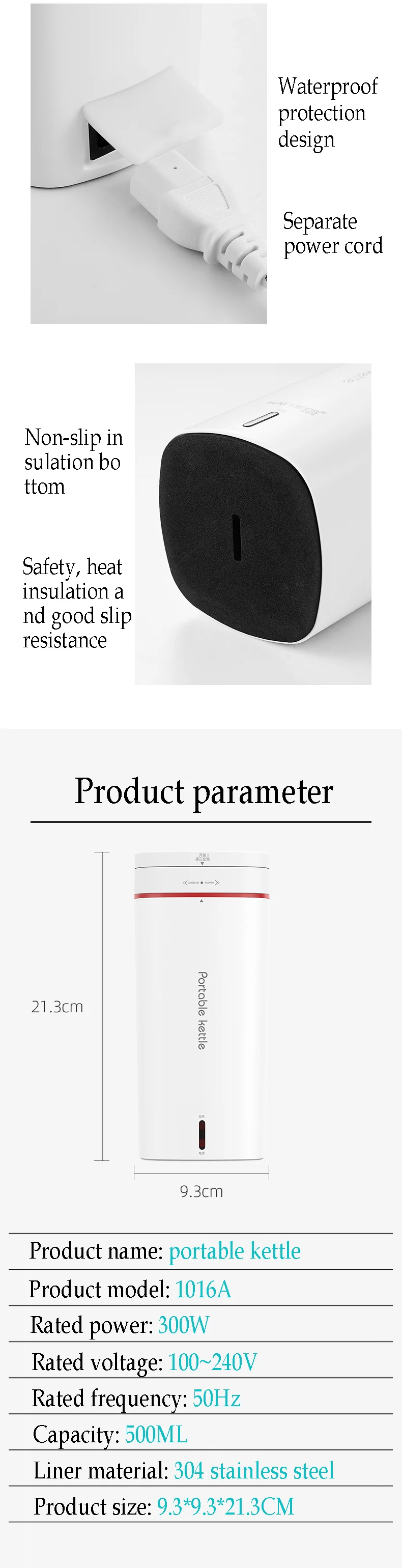 Портативный быстрозакипающий чайник 500 мл, 110-240 В, для путешествий, улицы, электрический чайник, водонагреватель, изоляционный бойлер