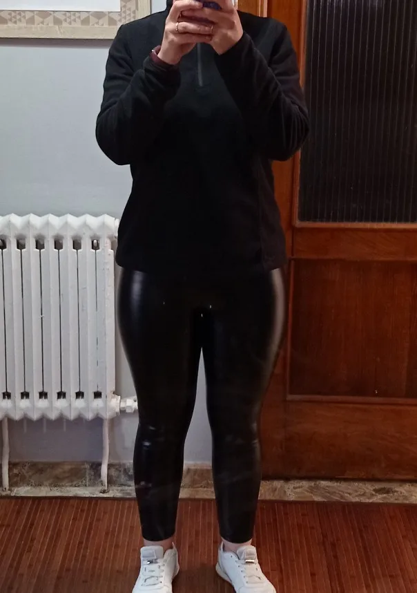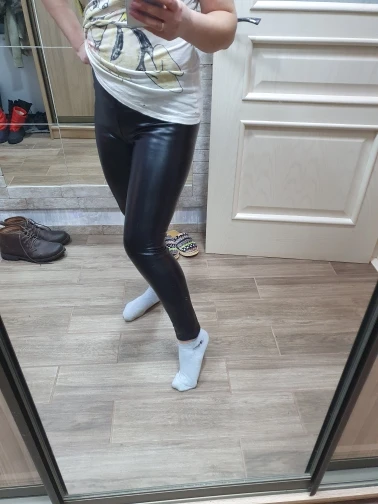 Леггинсы супер. На рост 165 талию 64, бёдра 90 размер м отлично. На вид они восхитительны, имитация кожи, блестит естественно ни более, загибов, заломов нет, тёплые, померила, и сразу тепло ногам. Как в носке будут не знаю. Первое впечатление, пошла ещё заказывать! Рекомендую
