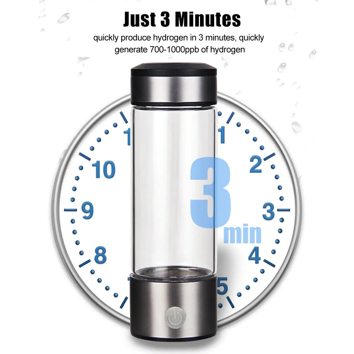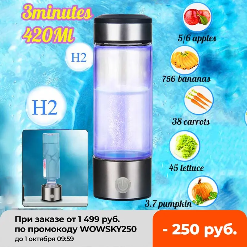 Портативный генератор водородной воды, бутылка с фильтром, 3 мин., 420 мл, для обогащения воды водородом, ионизатор, чистый электролиз H2