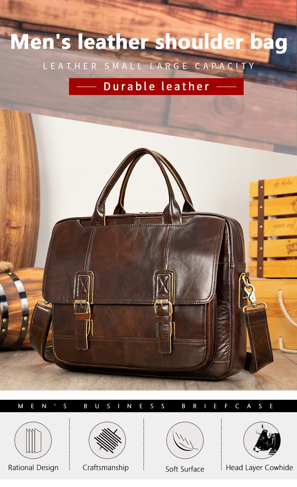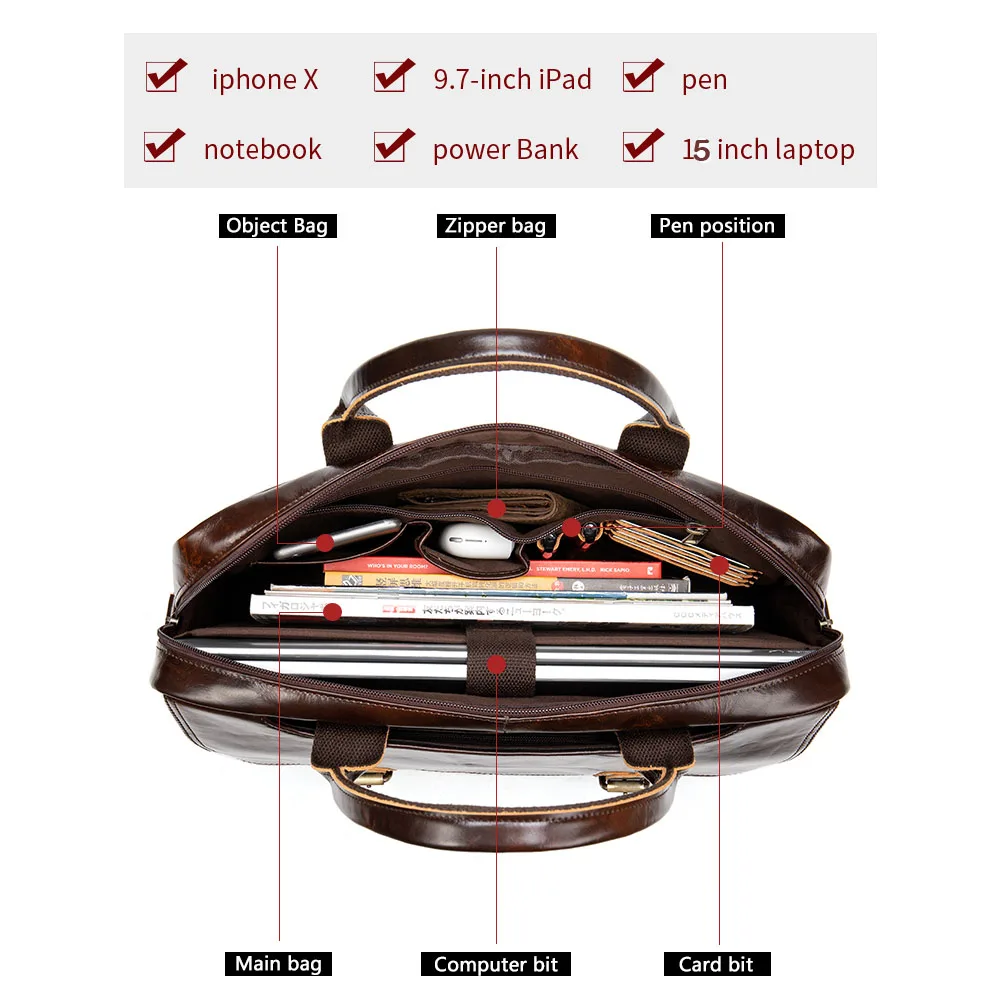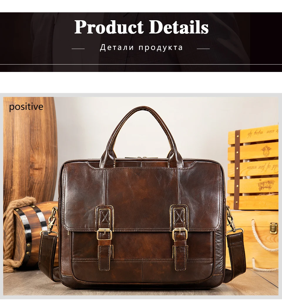 Сумка-портфель мужская из натуральной кожи, для ноутбука