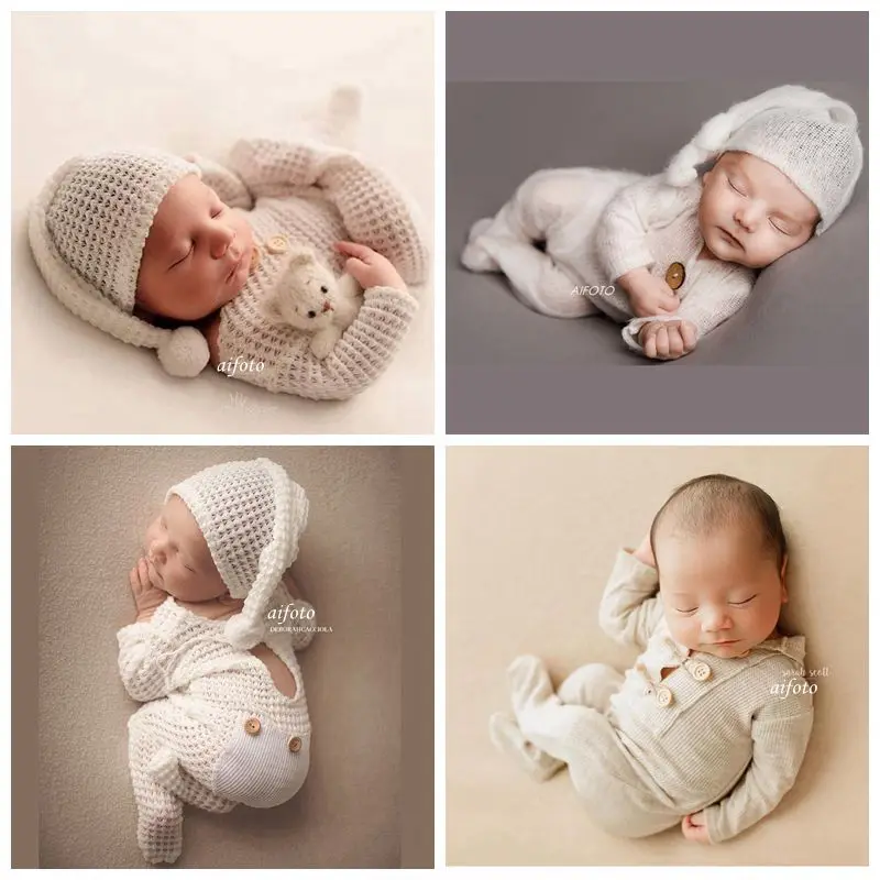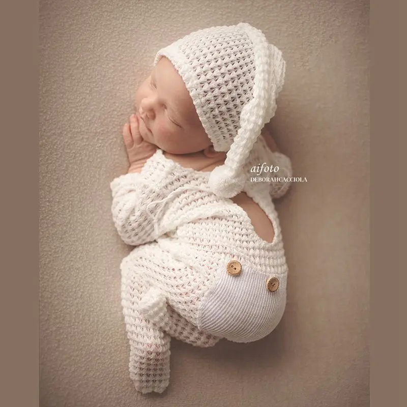 2020 реквизит для фотосъемки новорожденных белый наряд комбинезон для маленьких девочек и мальчиков + шапочка аксессуары для фотосъемки
