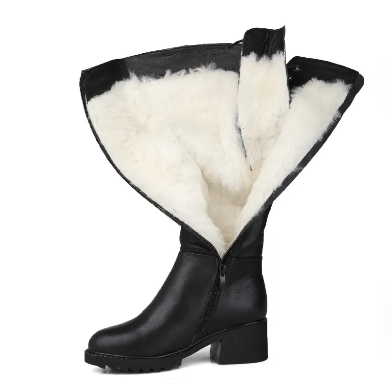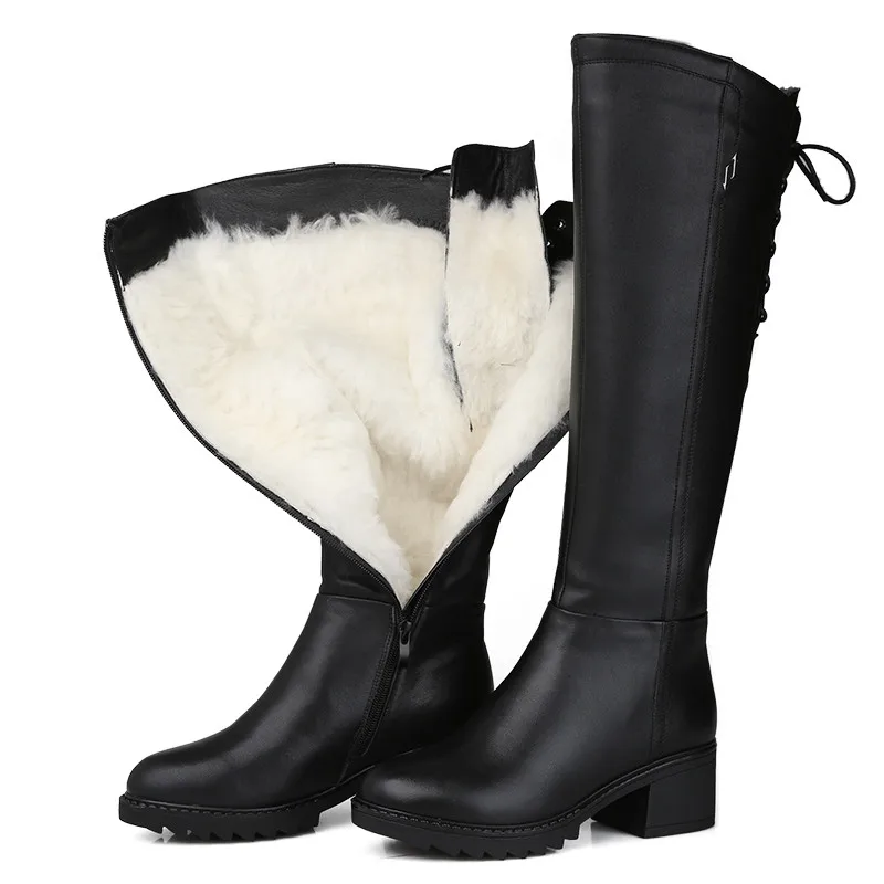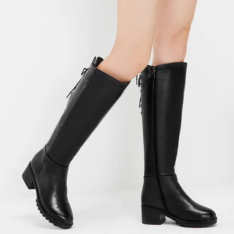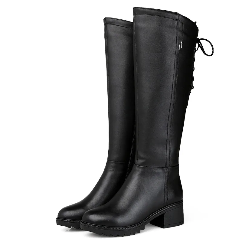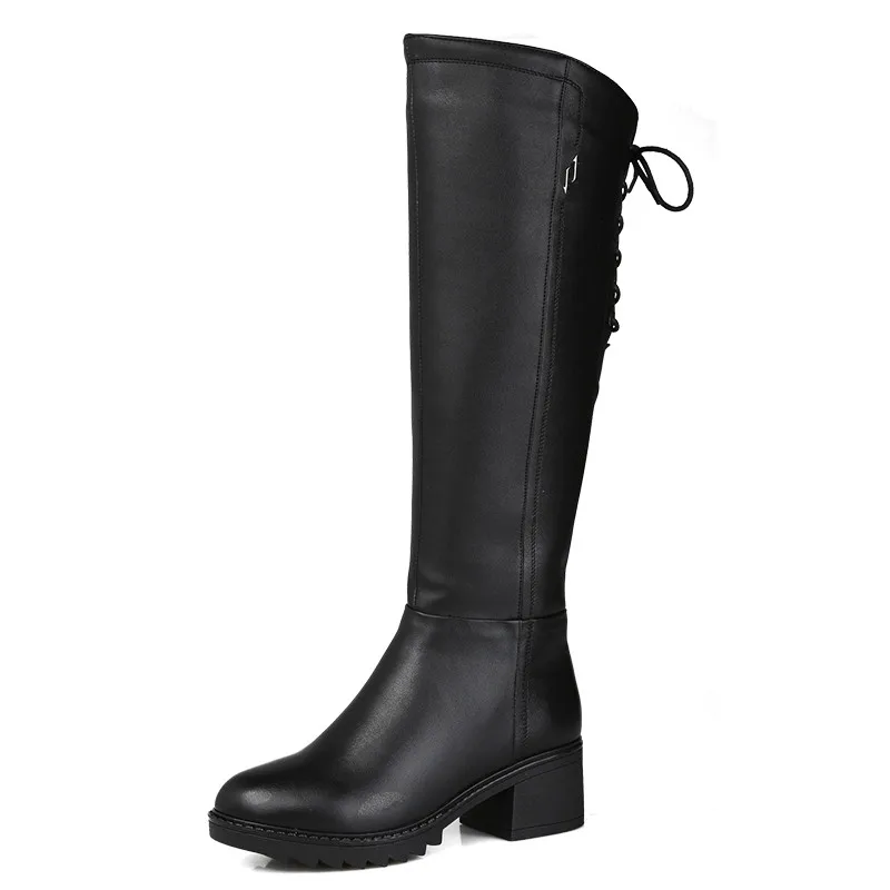 Сапоги женские зимние из натуральной кожи, на молнии, со шнуровкой сзади, 2021