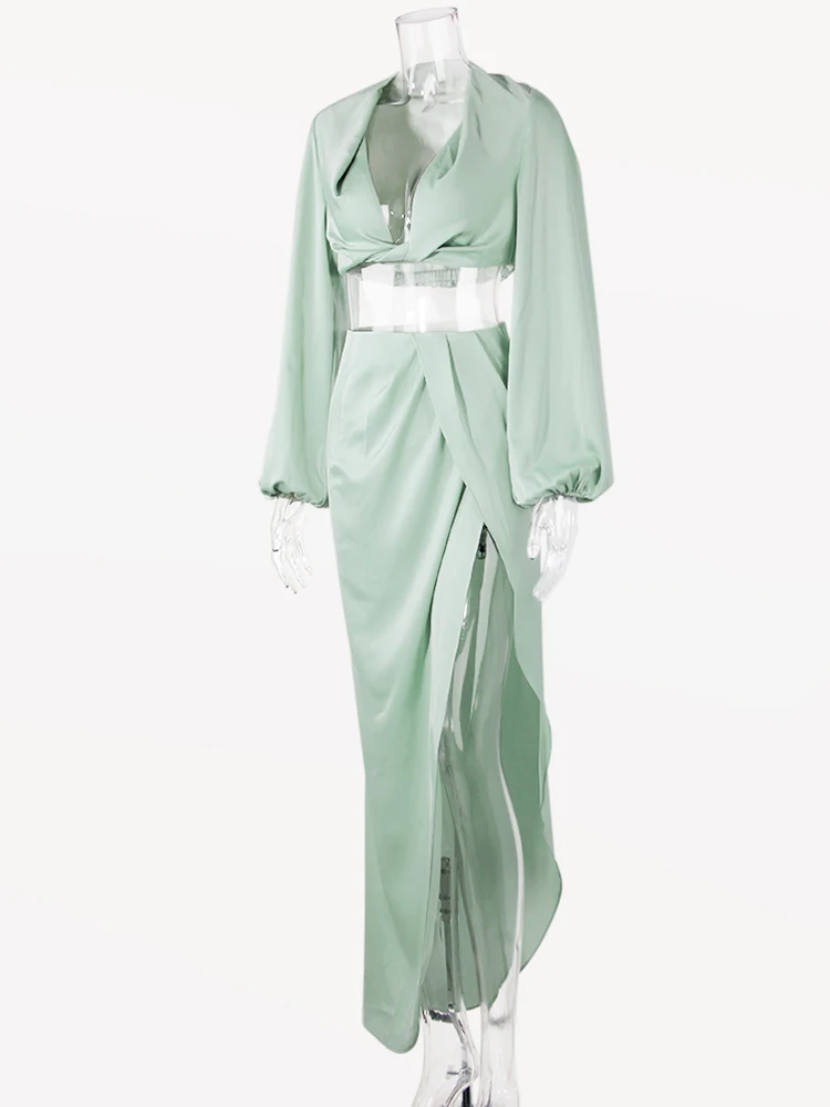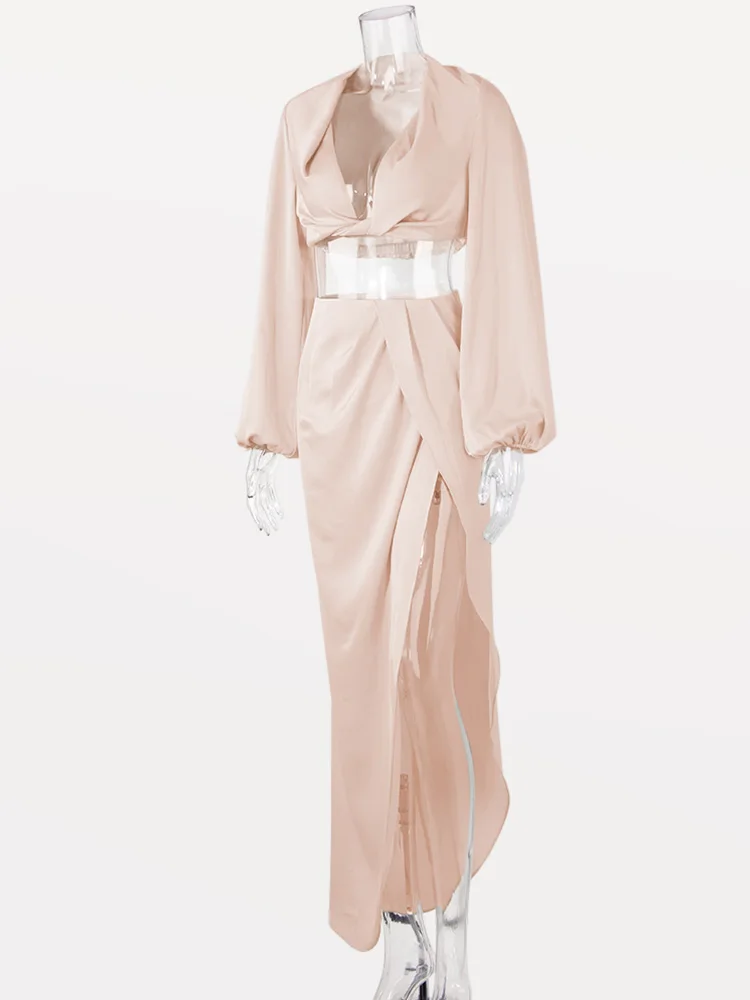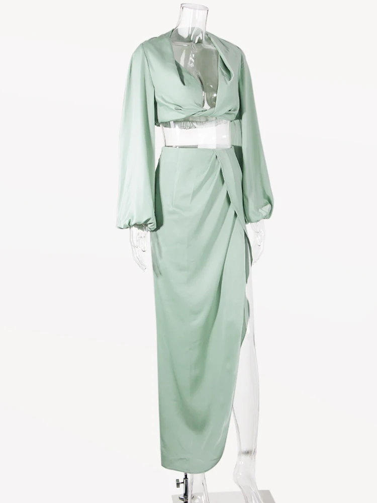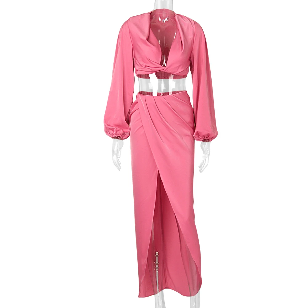 Женский комплект из двух предметов JillPeri, однотонный топ с длинным рукавом, асимметричный наряд для вечевечерние, клуба