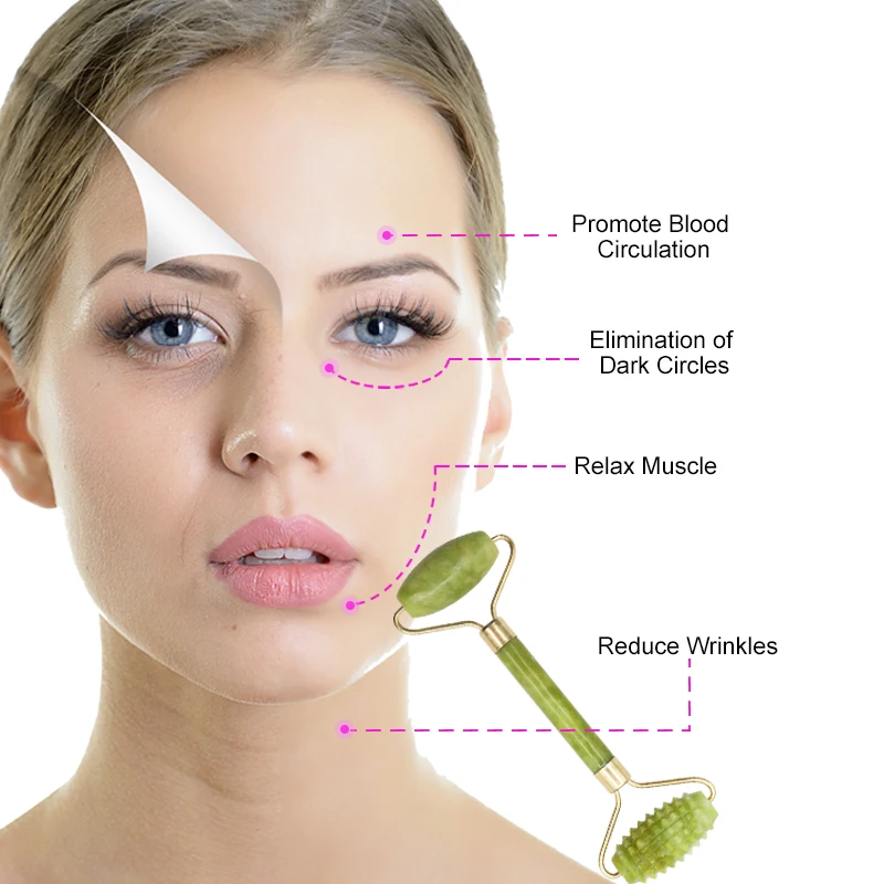 Массажный ролик для лица с двойной головкой, нефритовый массажер для лица, для похудения, для тела, шеи, природы, устройство, Прямая поставка, инструменты для ухода за кожей лица