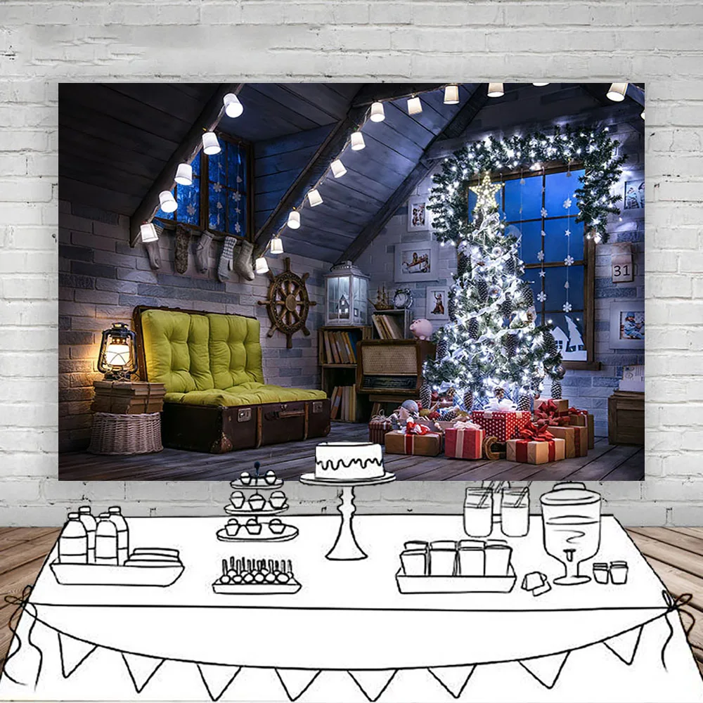Рождественский фон с изображением кирпичной стены для фотосъемки ме...