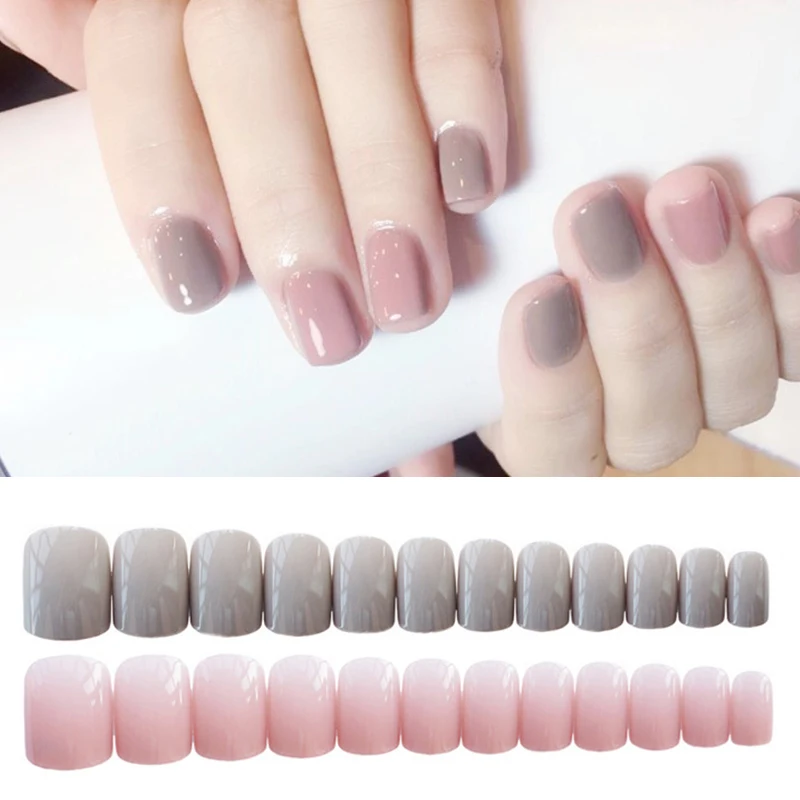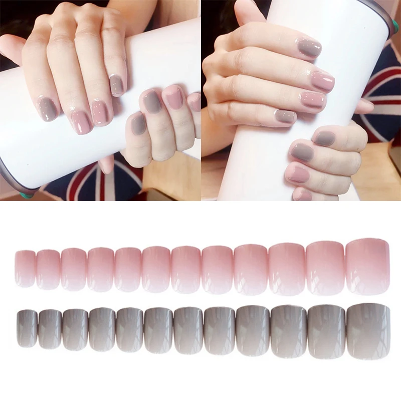 24 шт. накладные ногти для французского маникюра полное покрытие накладные ногти Кристальные элегантные розовые градиентные французские короткие ногти форма эллипса короткие накладные ногти