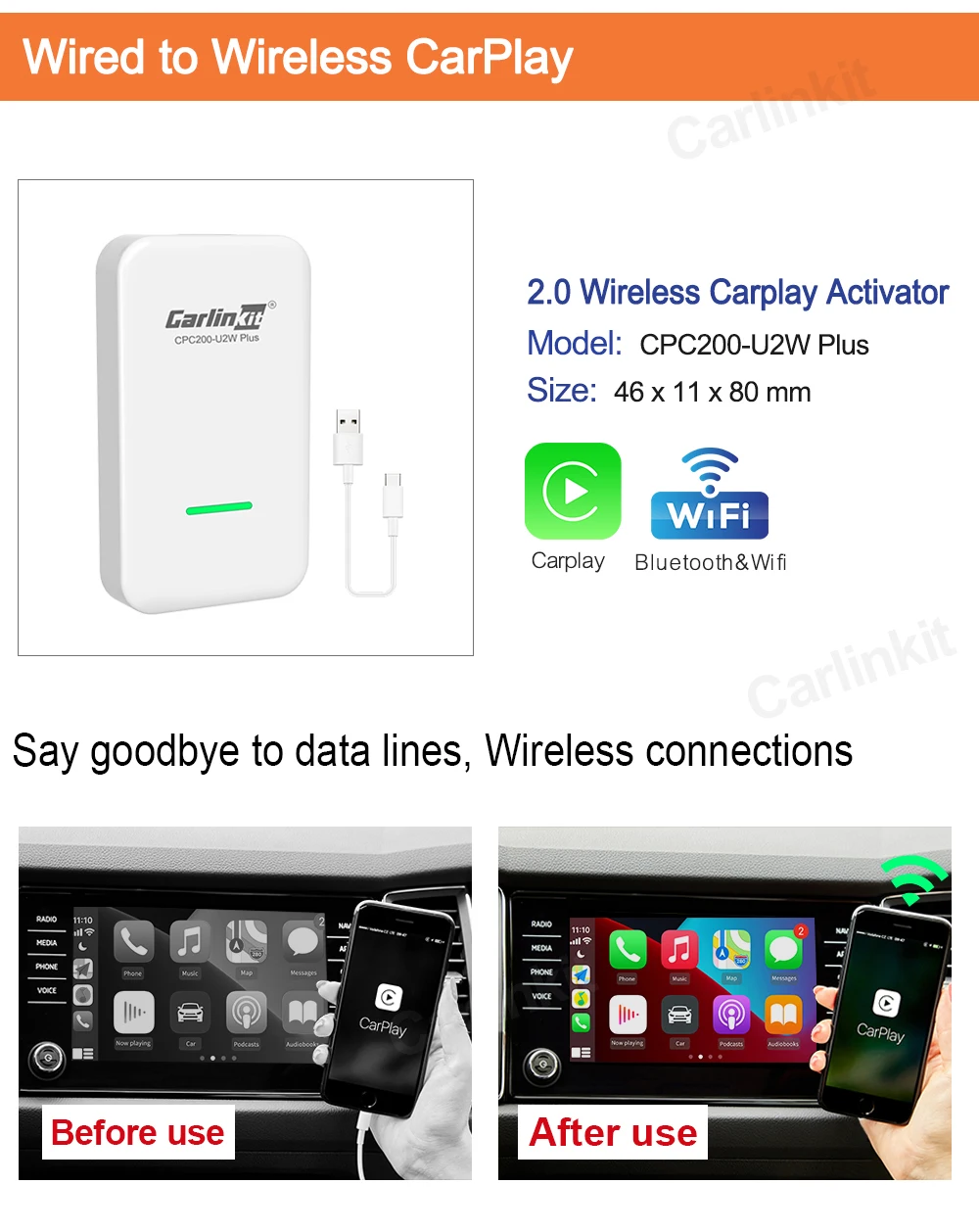 1. Новая версия: Carlinkit Wireless Carplay Activator Mini USB Dongle/пусть оригинальный автомобиль, встроенный в apple carplay, подключен к беспроводной carplay. (Больше моделей автомобилей и лет, пожалуйста, обратитесь к продавцу.)2. Простота в использовании: не нужно разбирать, подключать и играть немедленно. Мы разрабатываем и производим этот продукт для достижения проводного беспроводного использования.3. Совместимые устройства-: только поддержка моделей автомобилей с оригинальной CarPlay. Если вы хотите использовать ваш carplay по беспроводной связи, вы можете купить наш продукт. Наслаждайтесь вашим беспроводным автомобилем.4. Характеристики: он поддерживает кнопки рулевого колеса, управление ручкой, Голосовое управление (операция такая же, как и ваш оригинальный автомобиль).5. Бесплатное вождение и безопасное вождение: совершать/отвечать на звонки, проверять голосовые сообщения, текстовые сообщения и создавать карты. Слушайте ваши любимые песни с помощью приложений в формате «hands free», «apple music» или «apple music». Продукт поддерживает обновление прошивки.