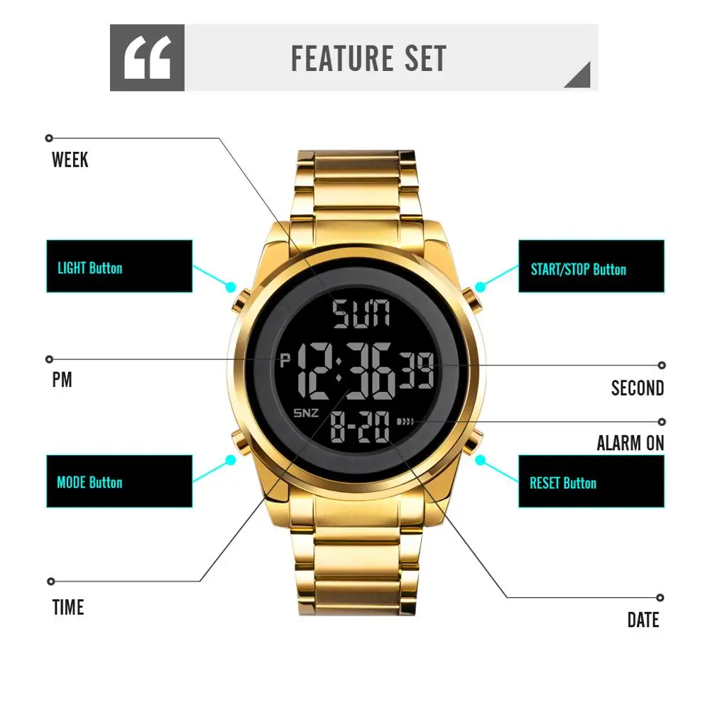 Мужские электронные часы SKMEI, цифровые часы из нержавеющей стали ...