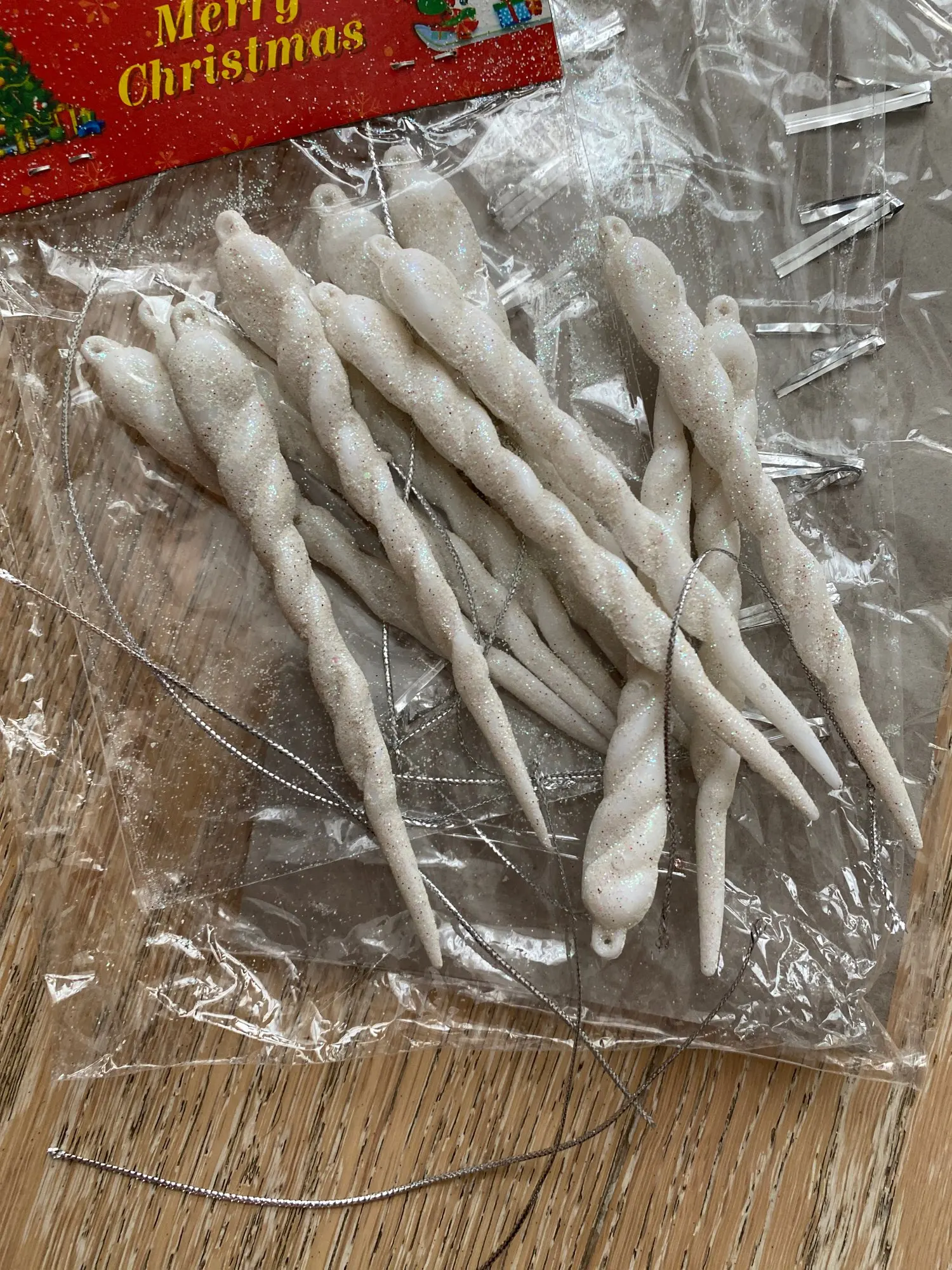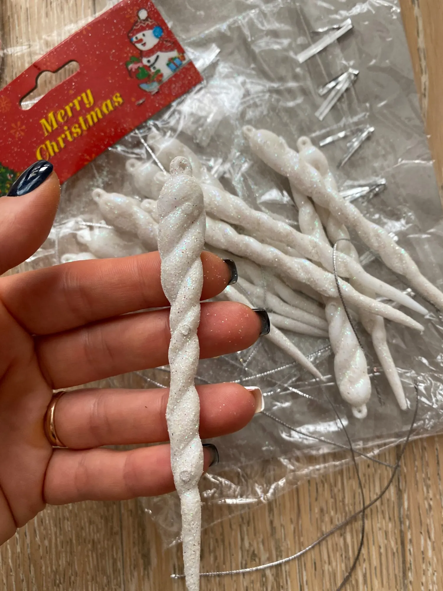 красивые сосульку, смотрятся мило на ёлочке, заказала а потом увидела в фикс прайсе такие же