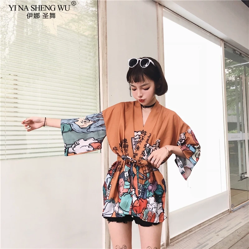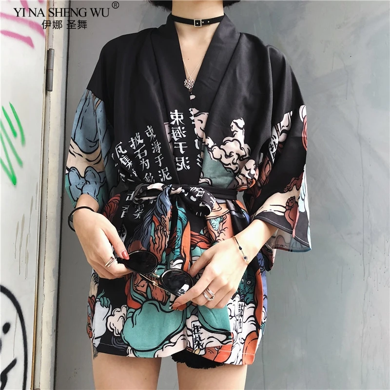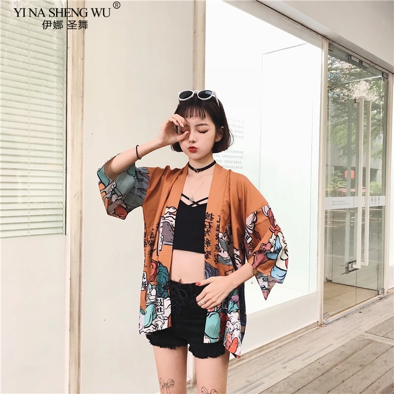 Японское кимоно для женщин 2020, кардиган, рубашка для косплея, блузка для женщин, японская юката, женское летнее пляжное кимоно