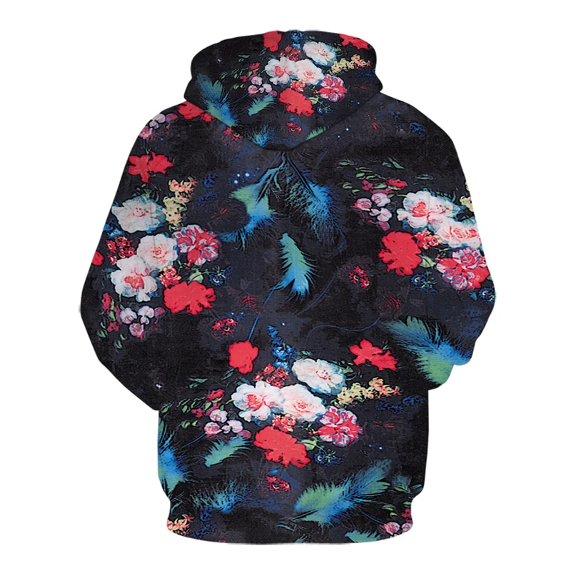 Худи мужское с длинным рукавом и 3D-принтом в виде роз и тюльпанов