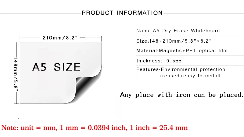 sizeA5 size,148mmx210mm/5.8"x8.2",vinyl white board sticker wall stickers