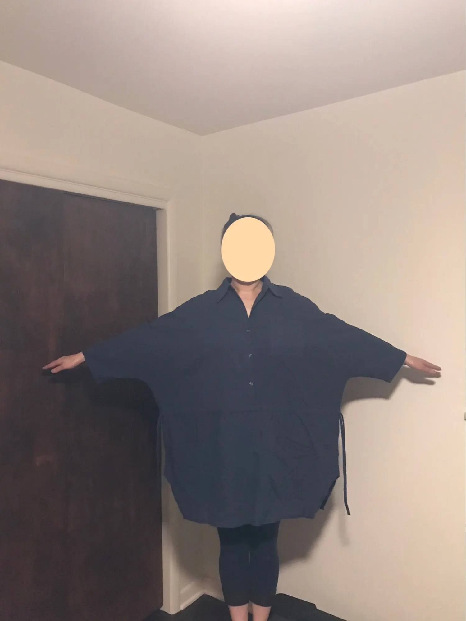 Я 5,3 ”(162) и 128 фунтов (58 кг). Мне нравится материал, из которого он сделан, и свободный крой. Но я жалуюсь на дизайн подмышек. Когда я поднимаю руку, все рубашки поднимаются вверх, и моя область бедер видна, это потому, что этот материал не растягивается. Если вы хотите носить это короткое цельнокроеное платье, будьте внимательны. Но доставка очень быстрая (2 недели), хороший материал, в целом у меня был хороший опыт покупок.