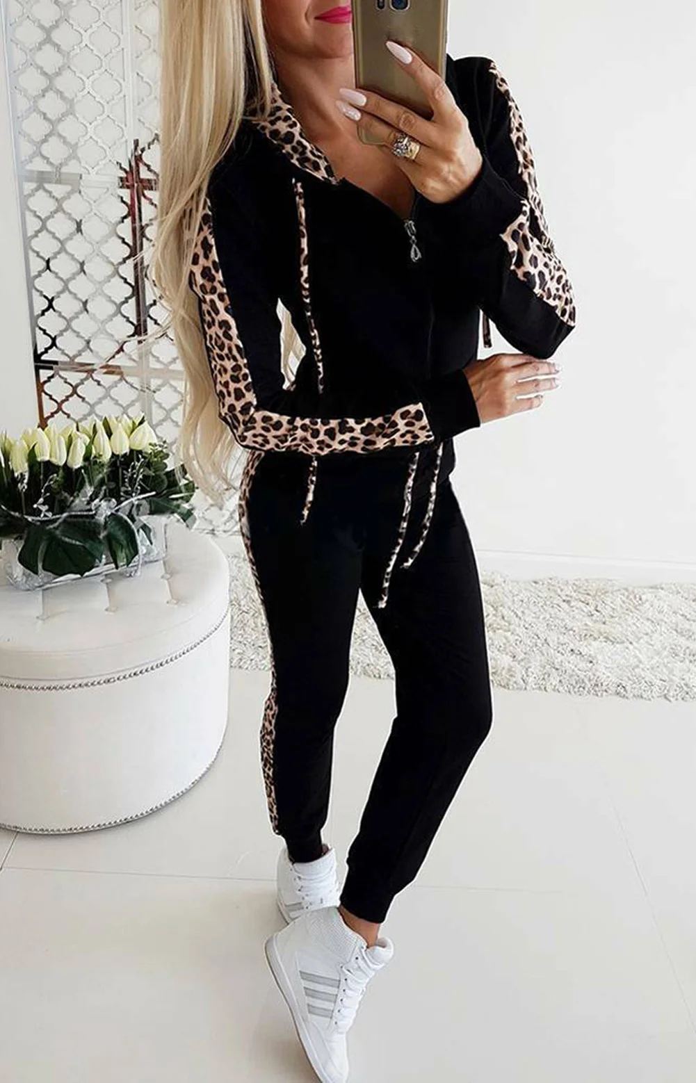 Модные женские зимние осенние толстовки, спортивные топы и штаны, спортивный костюм из 2 предметов, Леопардовый свитшот, спортивный костюм для бега