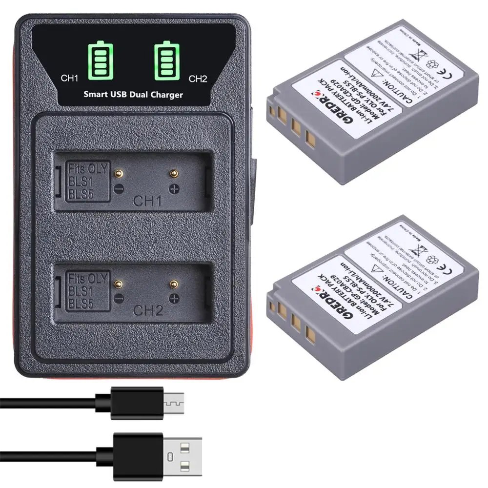 2000 мАч PS-BLS5 аккумулятор камеры + светодиодный двойной зарядное устройство с портом type-C