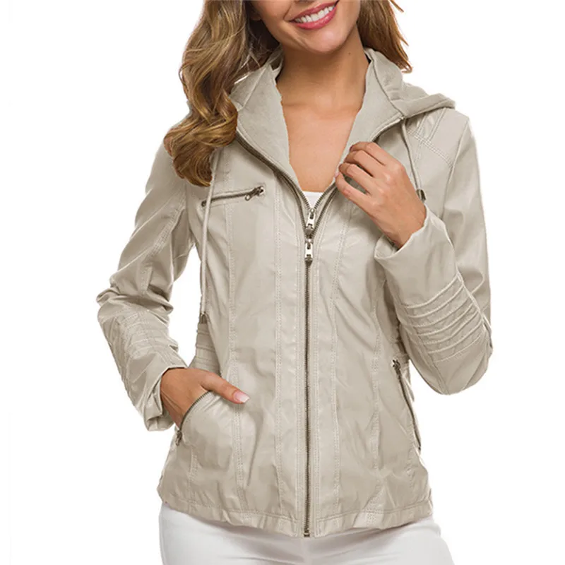 Куртка женская из искусственной кожи, ветрозащитная, на молнии, с капюшоном