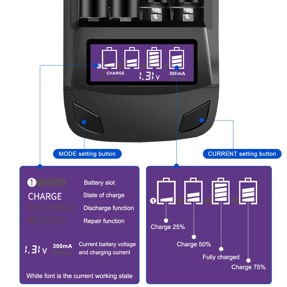 Suitable for1.2V AA / AAA Ni-Cd Ni-MH Nimh Nicd Rechargeable Batteries