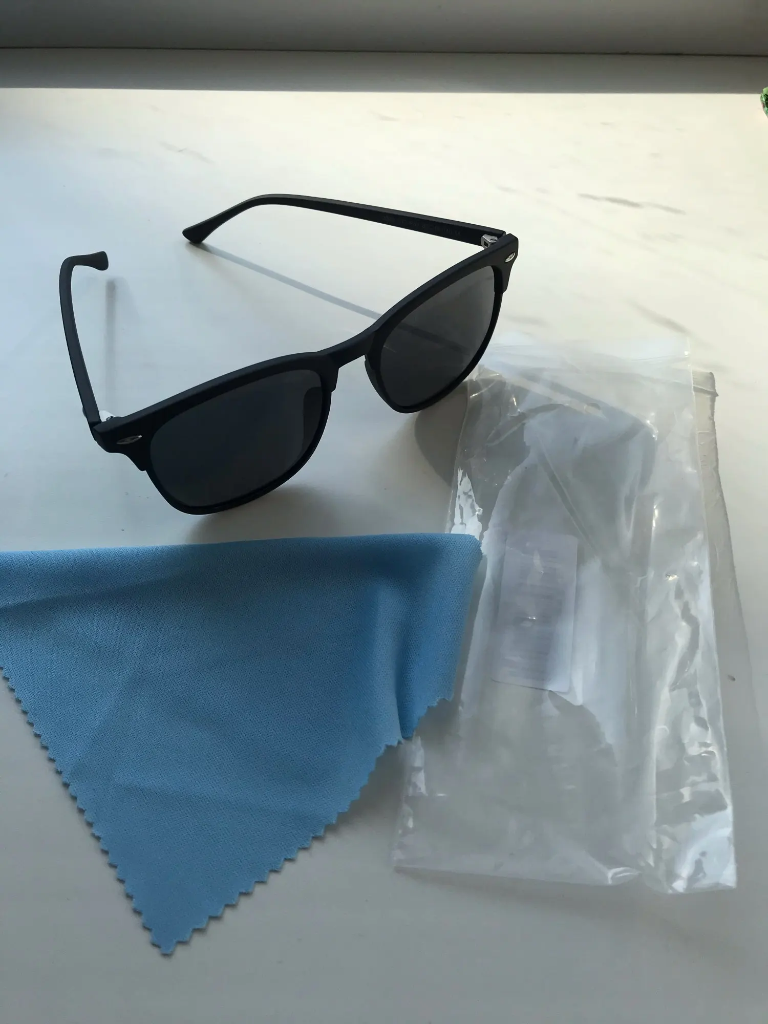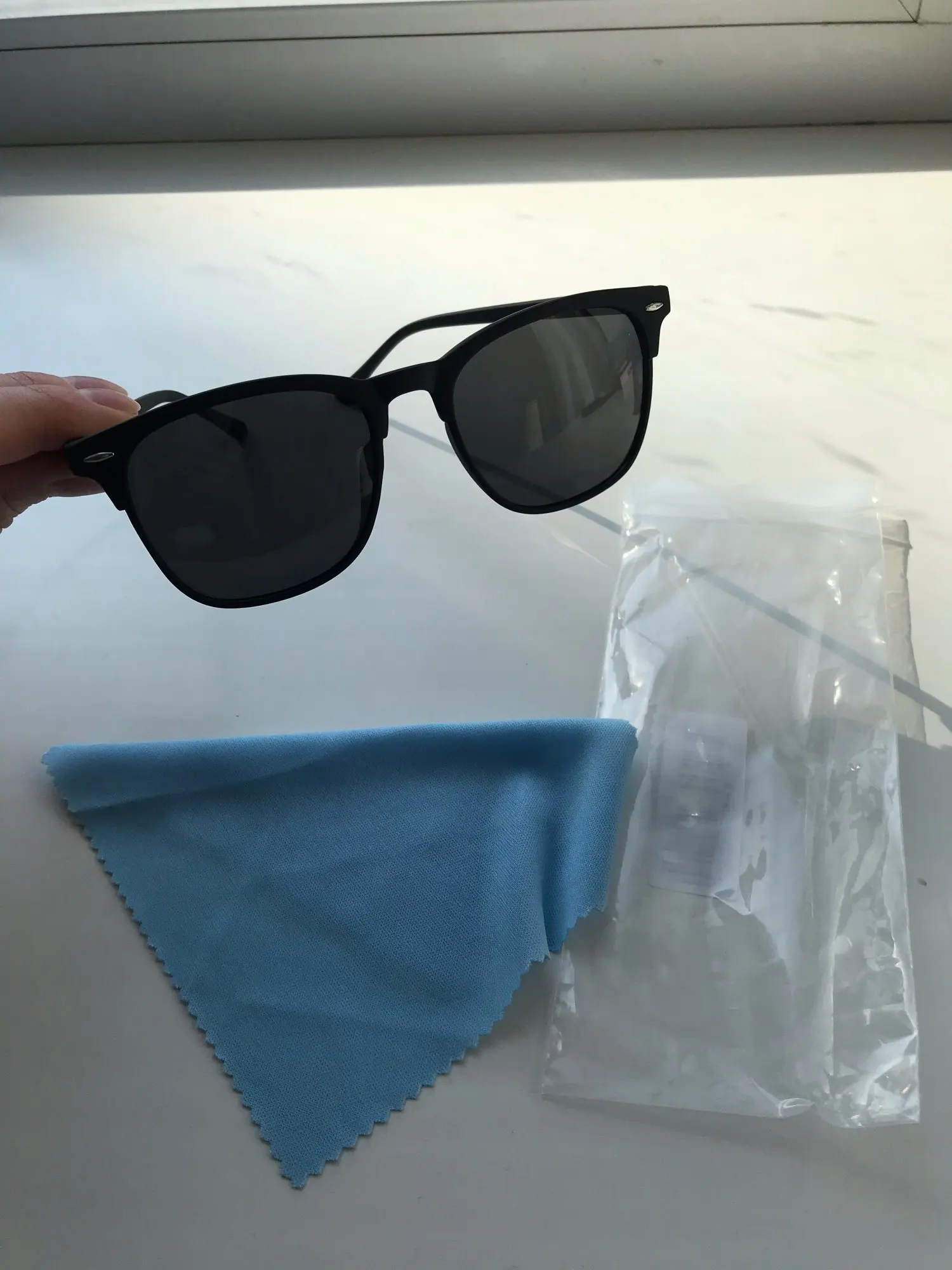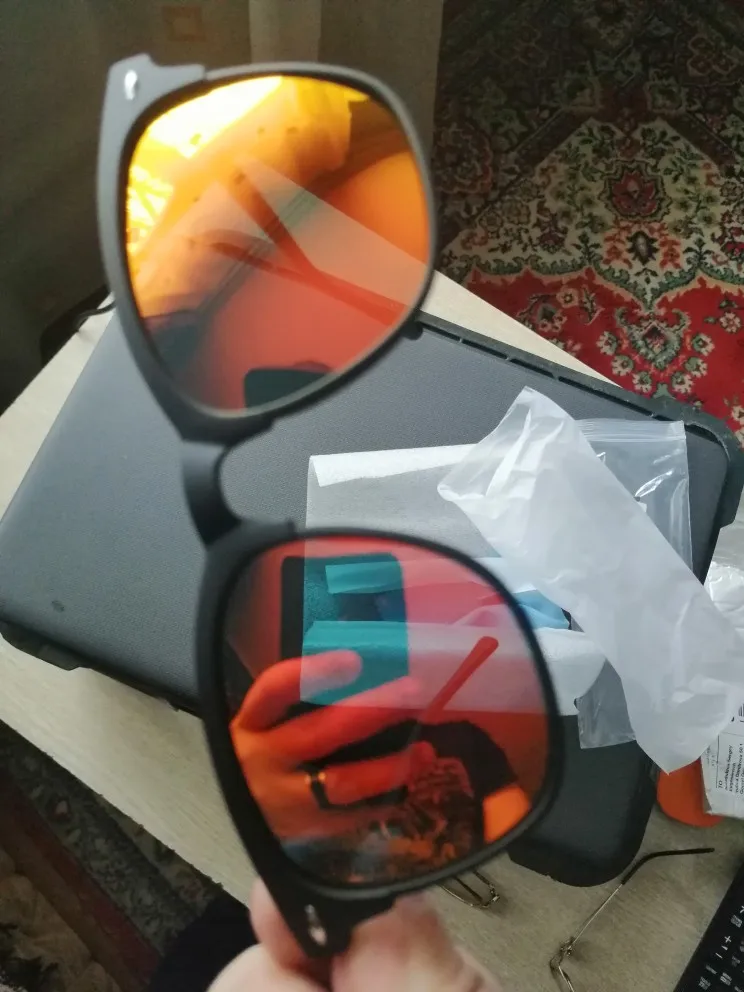 товар пришел в целости и сохранности) к очкам положили тряпочку(это мило), стекла пластмасс. смотрится классно, продавцу спасибо!)