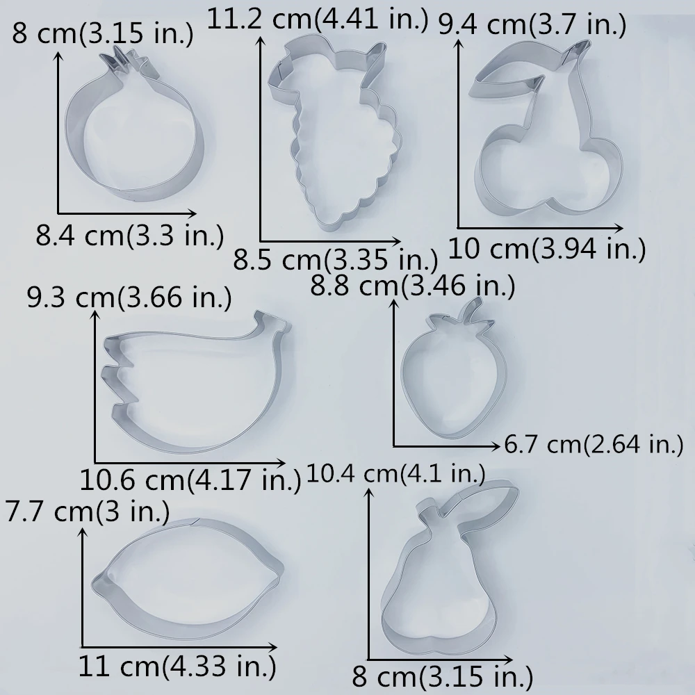 Набор для резки фруктов и печенья KENIAO, 7 шт., формы для фонданта из нержавеющей стали для клубники, груши, лимона, винограда, вишни