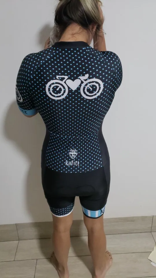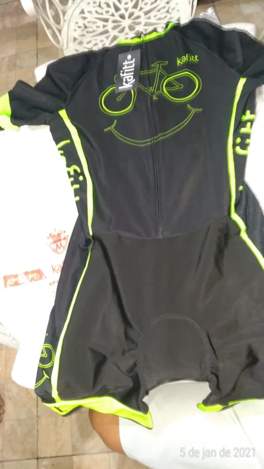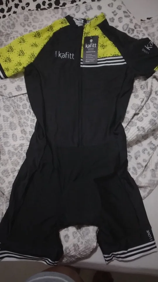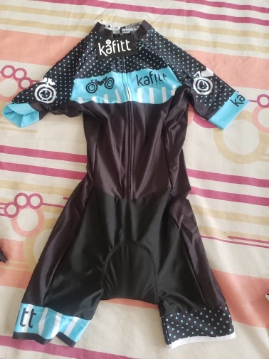 Очень доволен! Получено за 4 недели или чуть меньше. Точная Таблица размеров. Я колебался между XS и S, но оговорка предложила мне S, и наряд меня устраивает. «Подушка» между ногами очень толстая, поэтому очень удобная, с другой стороны, она может быть немного менее подходящей для длинных триатлонов. Меня это не беспокоит, потому что я купил этот наряд только для велосипедных прогулок. Наряд очень красивый, как на фото. Я рекомендую этого продавца, спасибо!