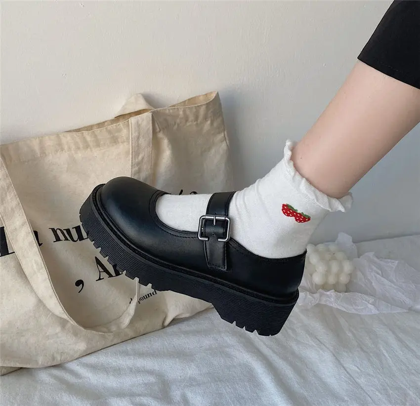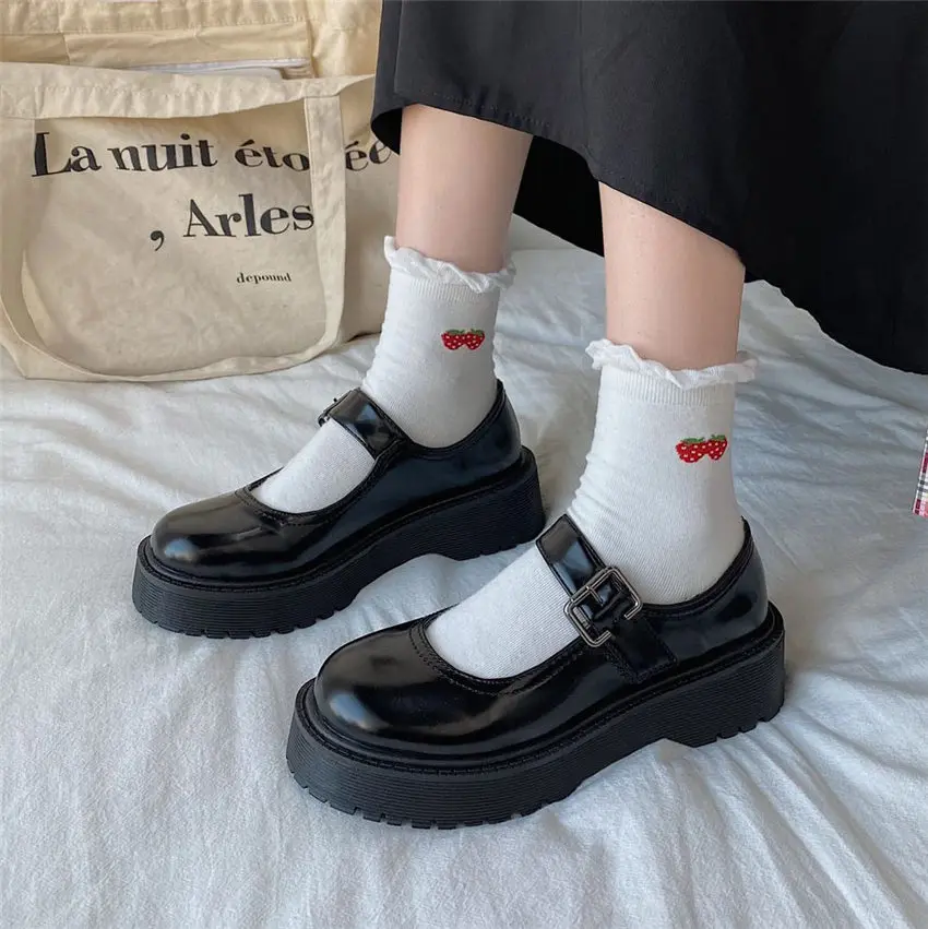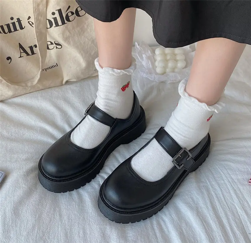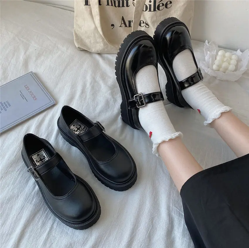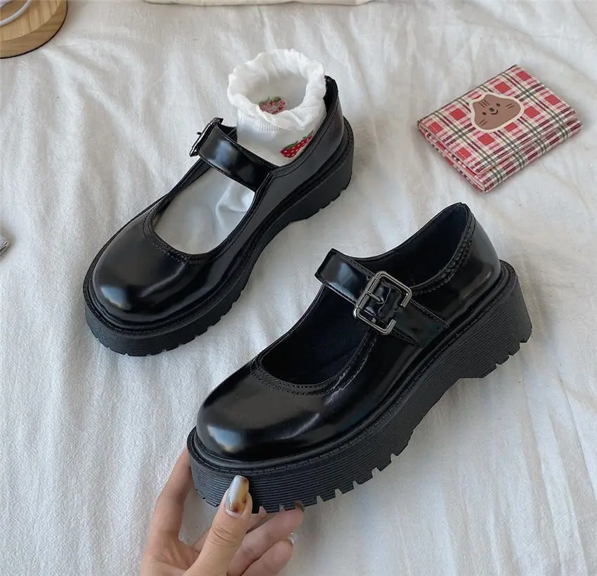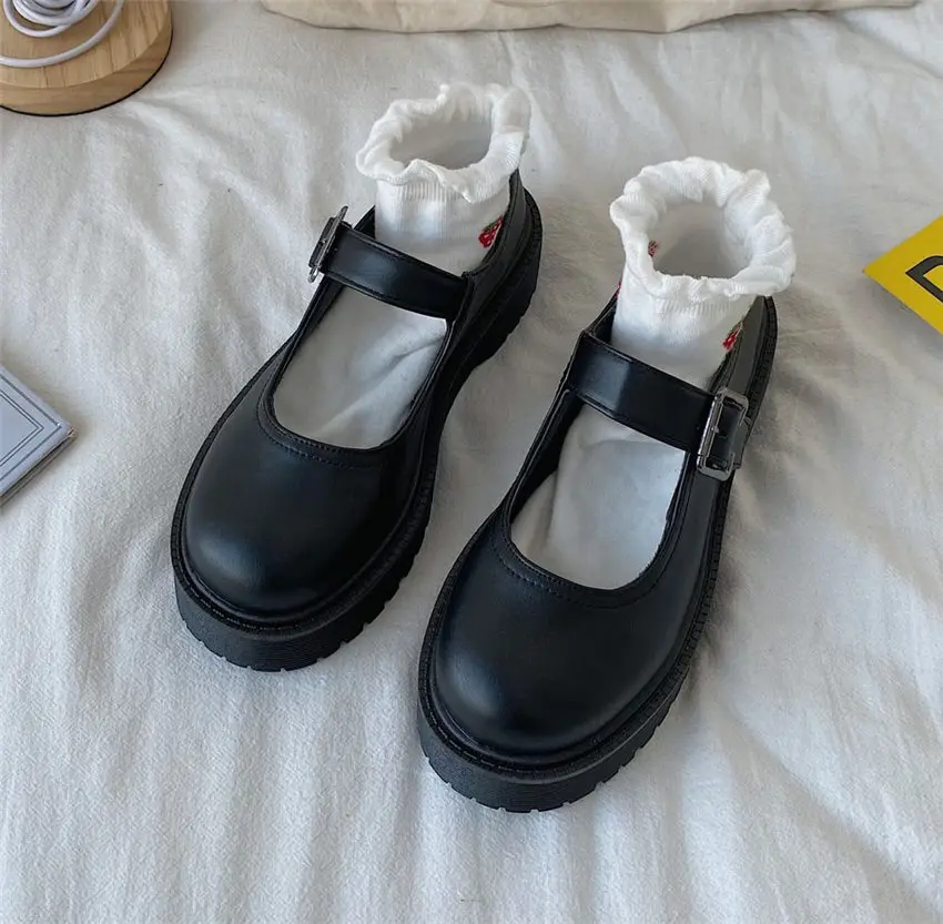 Обувь для школьниц; Обувь для студенток; Обувь в стиле Лолиты; JK; Обувь Mary Jane; Женские кроссовки в стиле Лолиты на низком каблуке