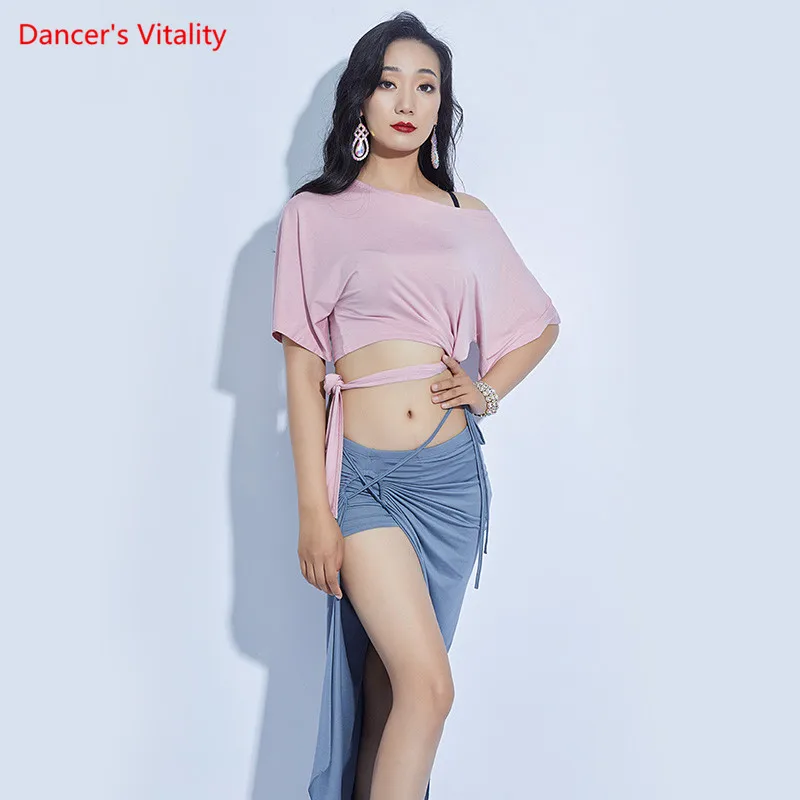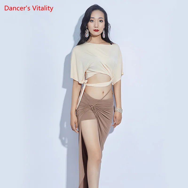 Костюм для танца живота женский, элегантный топ на завязках и длинная юбка, одежда для тренировок, для взрослых, лето-осень