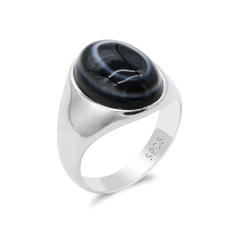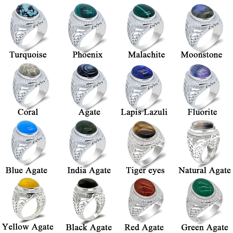 925 пробы Серебряное мужское кольцо с бирюзойлазуритомагатоммалахитомониксомФениксом