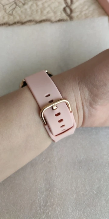 Цвет не очень подходит к розовой модели. Это удобно носить, но застежка выглядит так, как будто ее используют.