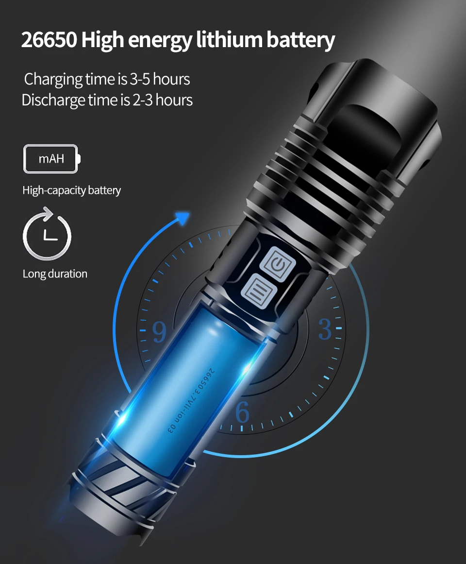 Мощная светодиодная вспышка xhp100, перезаряжаемая батарея 18650 26650, USB люмен, супер мощный фонарик xhp90 xhp70 xhp50, светильник