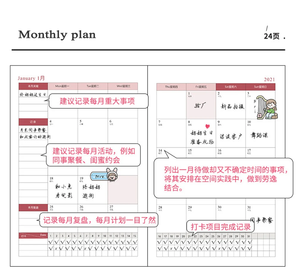 Ежедневник с планером на 2021 год, еженедельный ежемесячный блокнот и дневник А5, план на 365 дней, записная книжка Снова в школу, дорожное пособие