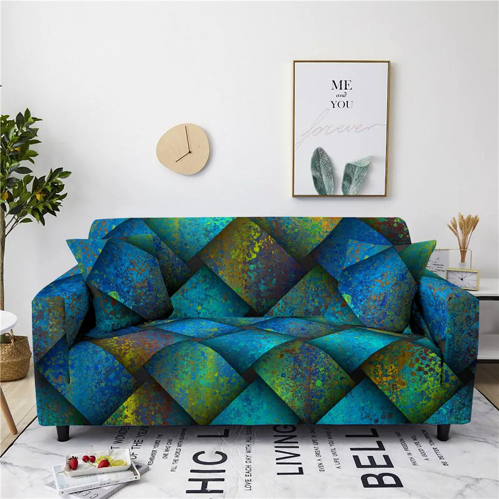 Чехол для дивана, эластичный, спандекс, с геометрическим мраморным ...