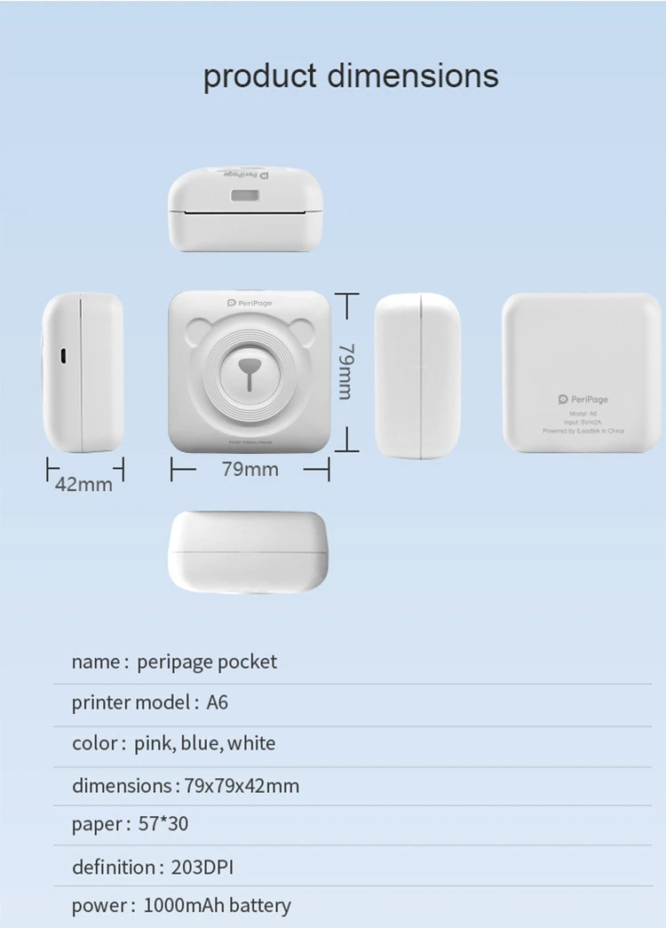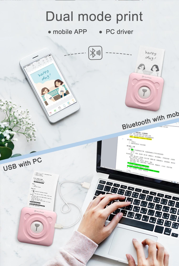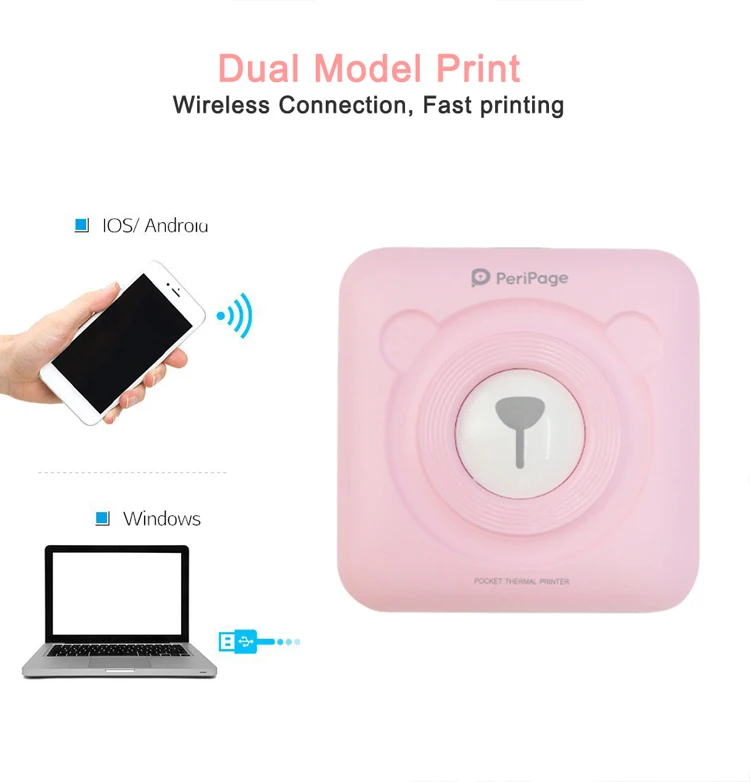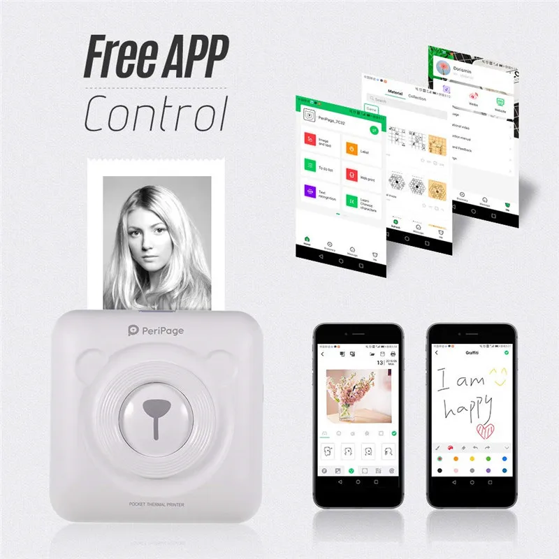 Портативный термопринтер Peripage, Bluetooth, 58 мм, карманный мини-принтер фотографий для мобильный телефон, Android, IOS, Ipad, Windows