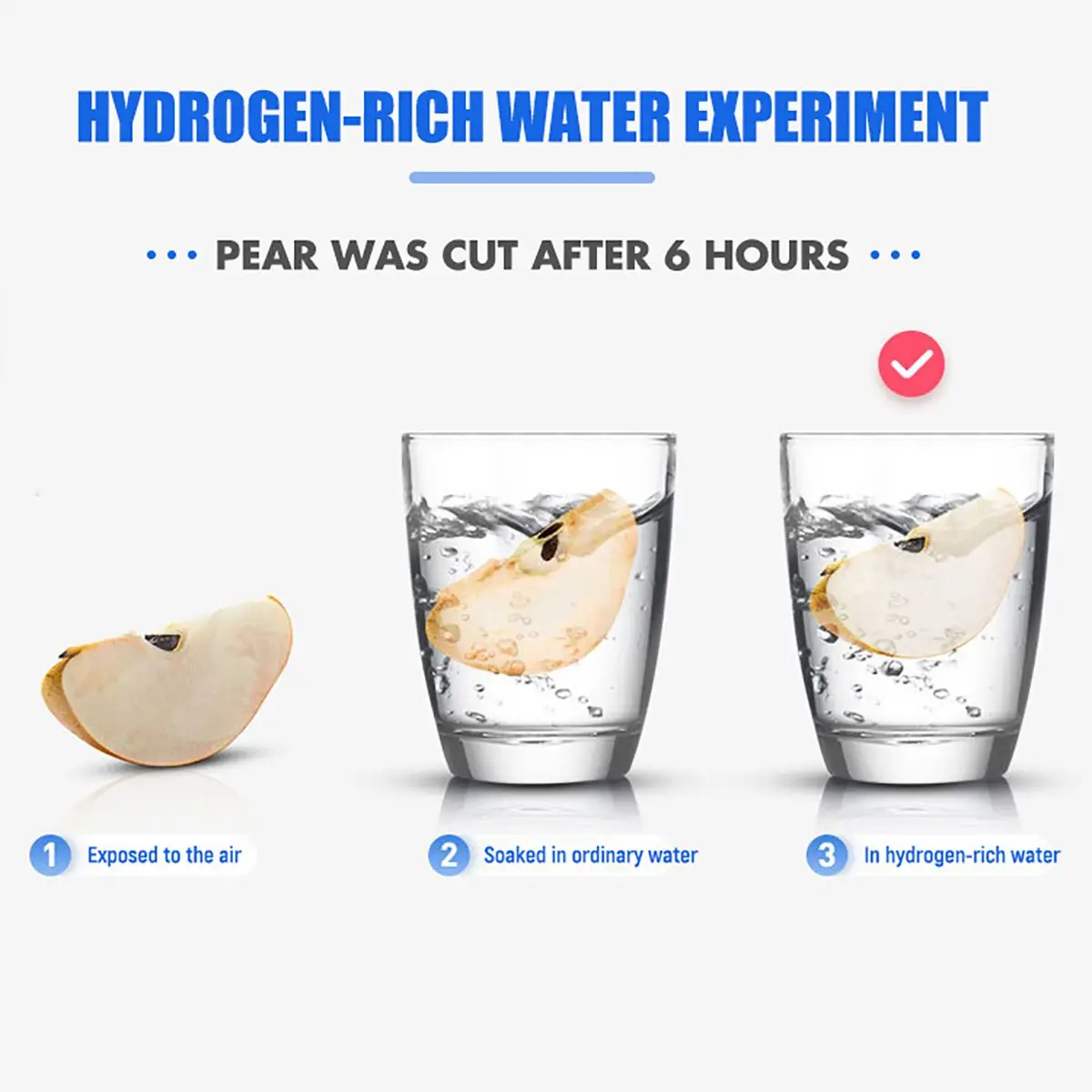 Примечание:1. Температура воды контролируется при 0 ~ 40 °C, в противном случае водород немедленно испарится, если он превышает 45 °C.2. Используйте кипяченую воду и минеральную воду для образования богатой Водородом Воды. (Не использовать чистую воду, дистиллированную и водопроводную воду)3. Время производства водорода составляет 3 ~ 5 минут, и он автоматически отключится после производства водорода.4. Лучшее время питья водородной воды-в течение 2 часов.