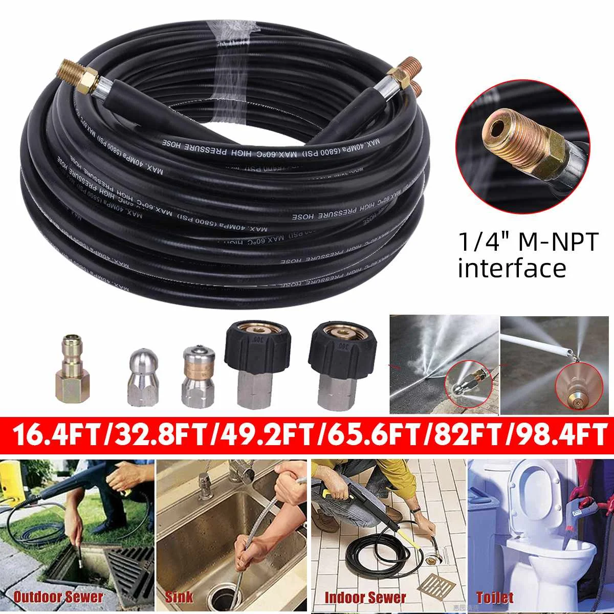 Набор для промывки канализации karcher, шланг для мойки высокого давления, 14 дюйма NPT, шланг для очистки слива, насадка для пуговицы и вращающийся шланг для канализации