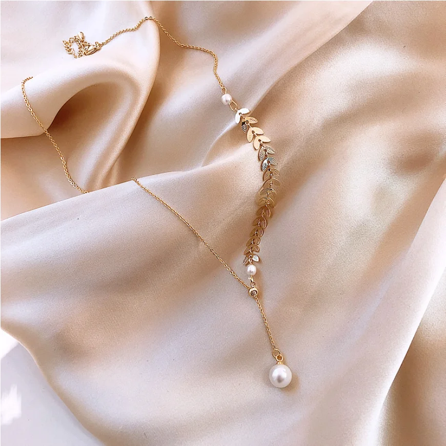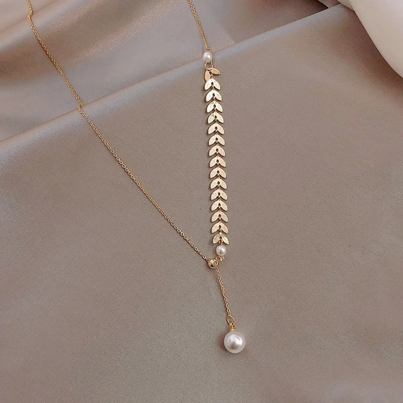 316L нержавеющая сталь Модные Изящные High-end гарнитур ювелирных украшений из природного жемчуга Пшенично Форма колье ожерелья подвески для женщин N-284