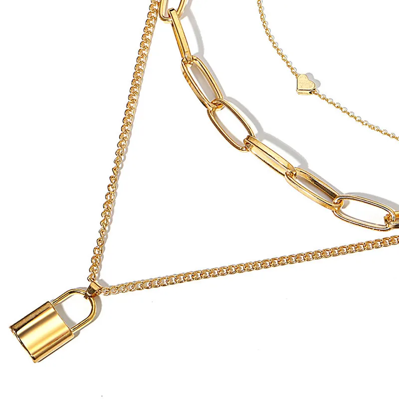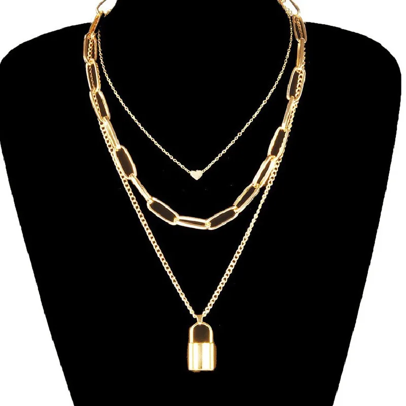 Простое и преувеличенное толстое ожерелье-цепочка в стиле ретро многослойное геометрическое ожерелье в форме сердца